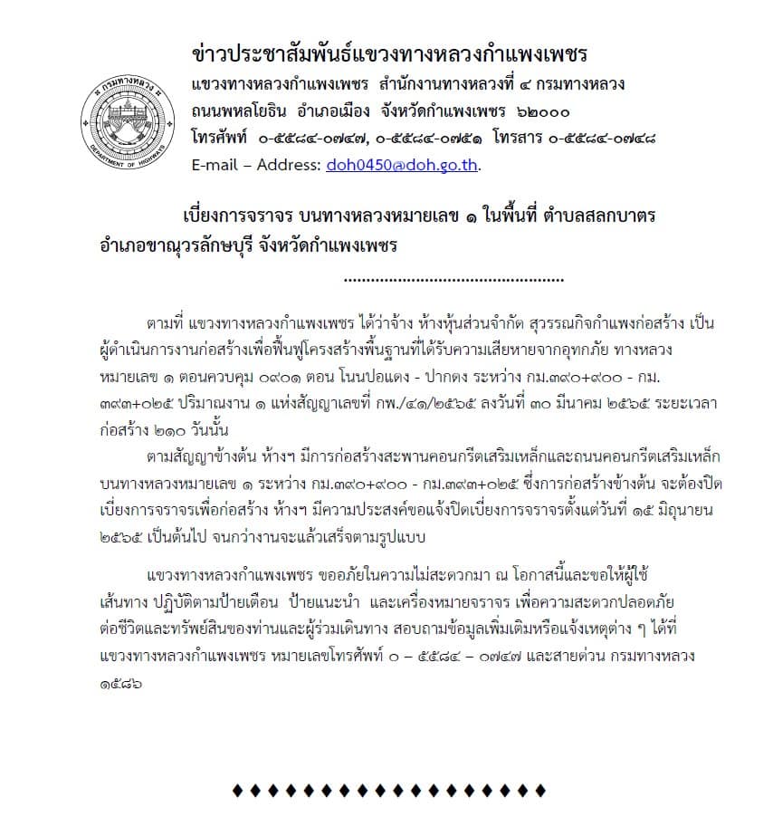 ข่าวสารแขวงทางหลวงกำแพงเพชร