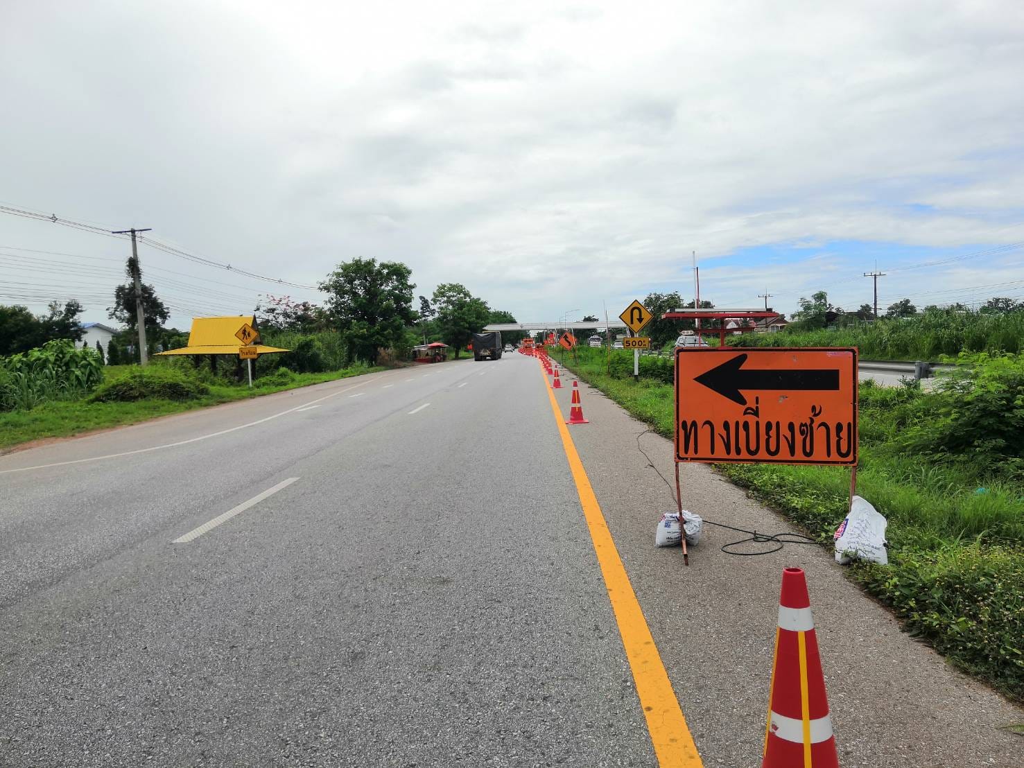 เบี่ยงการจราจร บนทางหลวงหมายเลข 1 ในพื้นที่ ตำบลไตรตรึงษ์ อำเภอเมือง จังหวัดกำแพงเพชร