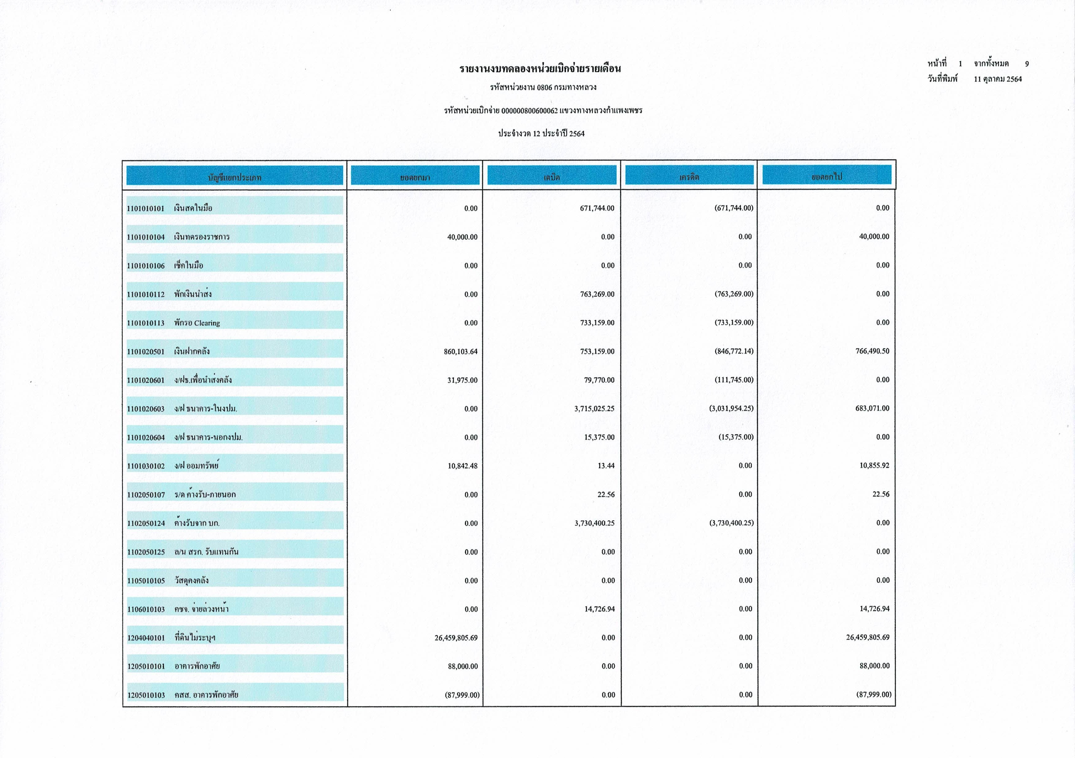 509 18/10/2564 แขวงทางหลวงกำแพงเพชร แจ้งประชาสัมพันธ์รายงานงบทดลองปีงบประมาณ 2564