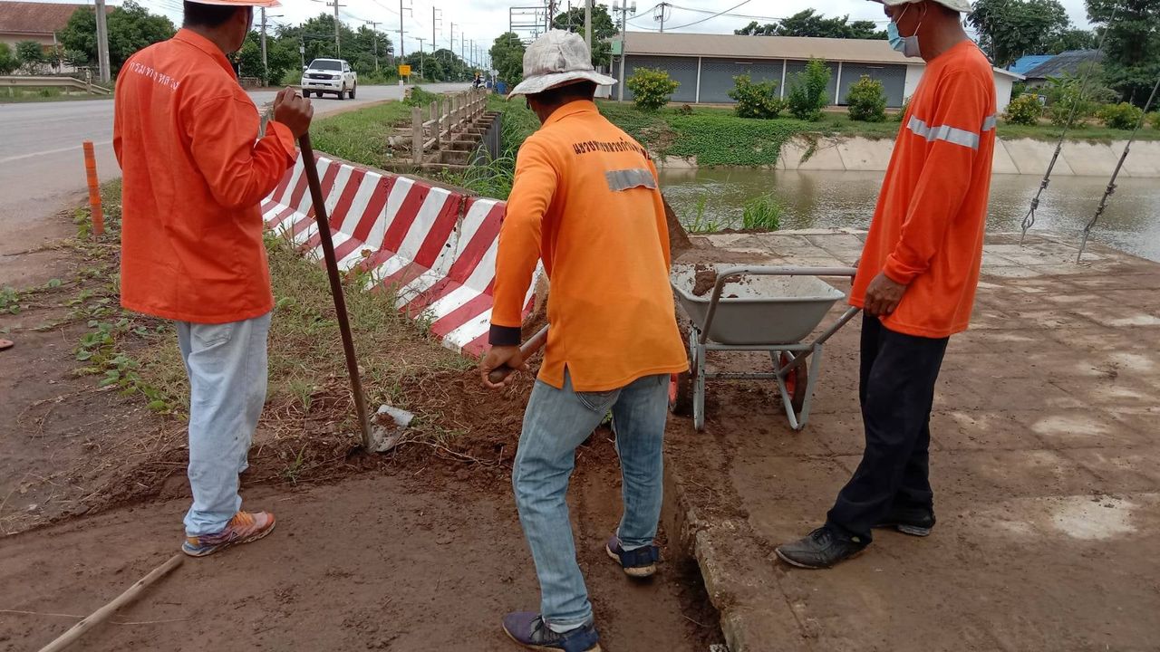 แขวงทางหลวงกำแพงเพชร เข้าตรวจสอบพื้นที่ และดำเนินการป้องกันน้ำกัดเซาะบริเวณไหล่ทาง ทางหลวงหมายเลข 1109 (สะพานหนองแดน)