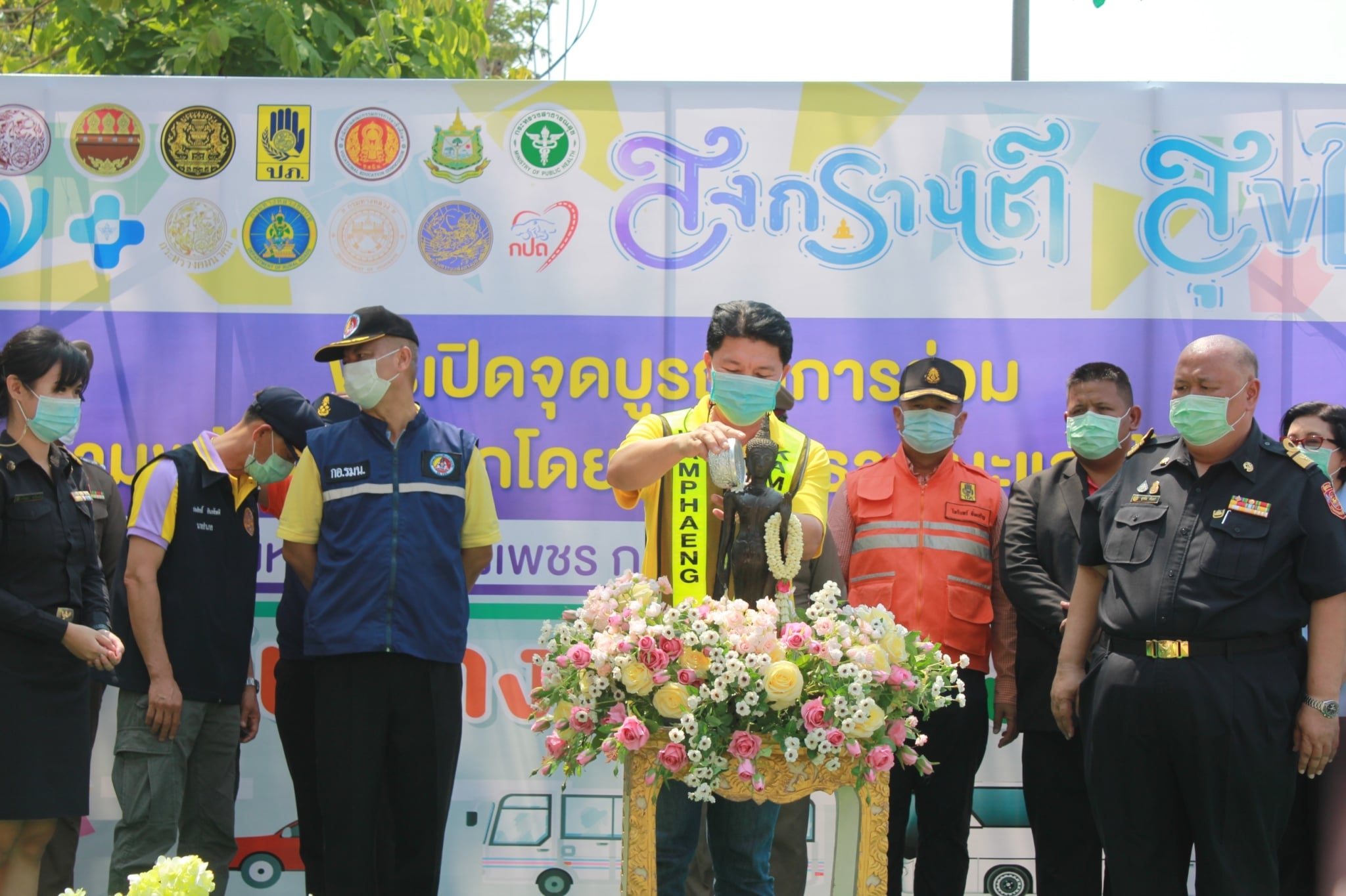 นายชัยศิริ ผูกใจเพื่อน ผู้อำนวยการแขวงทางหลวงกำแพงเพชร ร่วมพิธีเปิดจุดบูรณาการร่วม และจุดตรวจความพร้อมของรถโดยสารสาธารณะและผู้ขับรถ