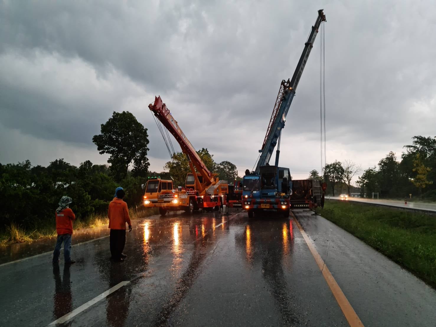 ขณะนี้ (เวลา 15.30 น.) ยังไม่สามารถเคลื่อนย้ายรถที่ขวางถนนออกได้ เนื่องจากรถมีน้ำหนักมากเพราะ ไม่สามารถเปิดประตูบรรทุกเพื่อนำสินค้าทางการเกษตรออกมาจากรถได้ โดยในช่วงเช้าแขวงฯ และบริษัทประกันภัยของรถ ได้ประสานจัดหารถเครนจำนวน 2 คัน เพื่อมายกรถออกจากถนนแต่ด้วยน้ำหนักรถที่มากจึงทำให้สลิงของรถเครนรับน้ำหนักไม่ไหว ขณะนี้อยู่ระหว่างการประสานขอรถเครนมาเพิ่ม