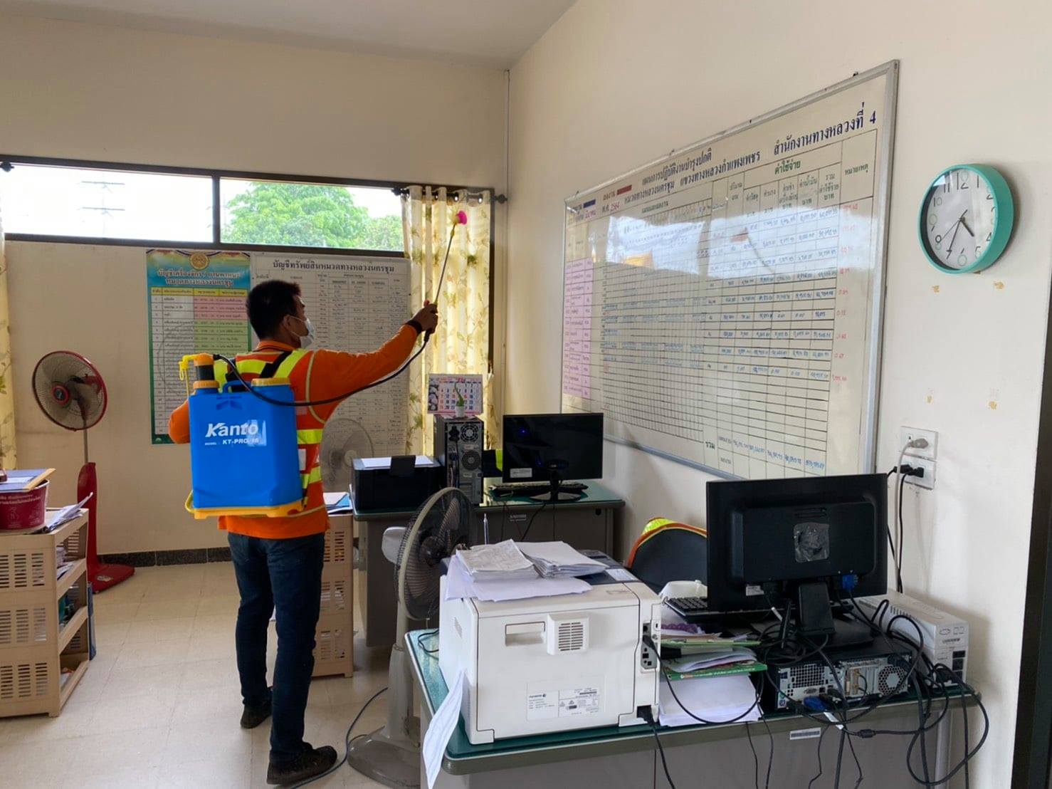 วันที่ 12 พฤษภาคม 2564 นายชัยศิริ ผูกใจเพื่อน ผู้อำนวยการแขวงทางหลวงกำแพงเพชร ดำเนินการตามมาตรการป้องกันและควบคุมเชื้อไวรัส COVID-19 มอบหมายให้งานวานแผนแขวงฯ และหมวดทางหลวงในสังกัด ทำการฉีดพ่นยาฆ่าเชื้อสำนักงานและพื้นที่บริเวณโดยรอบ เพื่อลดความเสี่ยงของการแพร่ระบาดเชื้อไวรัส COVID-19