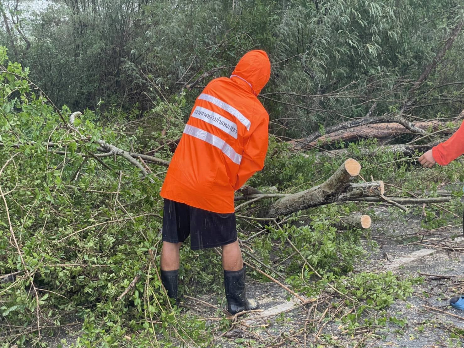 วันที่ 6 มิถุนายน 2564 เวลา 15.30 น. ได้เกิดฝนฟ้าคะนอง ลมกรรโชกแรง ทำให้มีต้นไม้ กิ่งไม้ หักโค่นทับผิวจราจร แขวงทางหลวงกำแพงเพชร โดยหมวดทางหลวงบ่อทอง ได้นำเจ้าหน้าที่ตัดต้นไม้ที่หักโค่นและทำความสะอาดผิวทาง ทางหลวงหมายเลข 1280 ตอนทุ่งมหาชัย-ระหาน ที่ กม.14+900 ด้านซ้ายทาง ท้องที่ บ้านทุ่งทอง ตำบลทุ่งทราย อำเภอทรายทองวัฒนา จังหวัดกำแพงเพชร ซึ่งดำเนินการแล้วเสร็จเมื่อเวลา 16.00 น. เพื่อป้องกันอันตรายและอำนวยความสะดวกให้กับประชาชนที่ใช้เส้นทาง