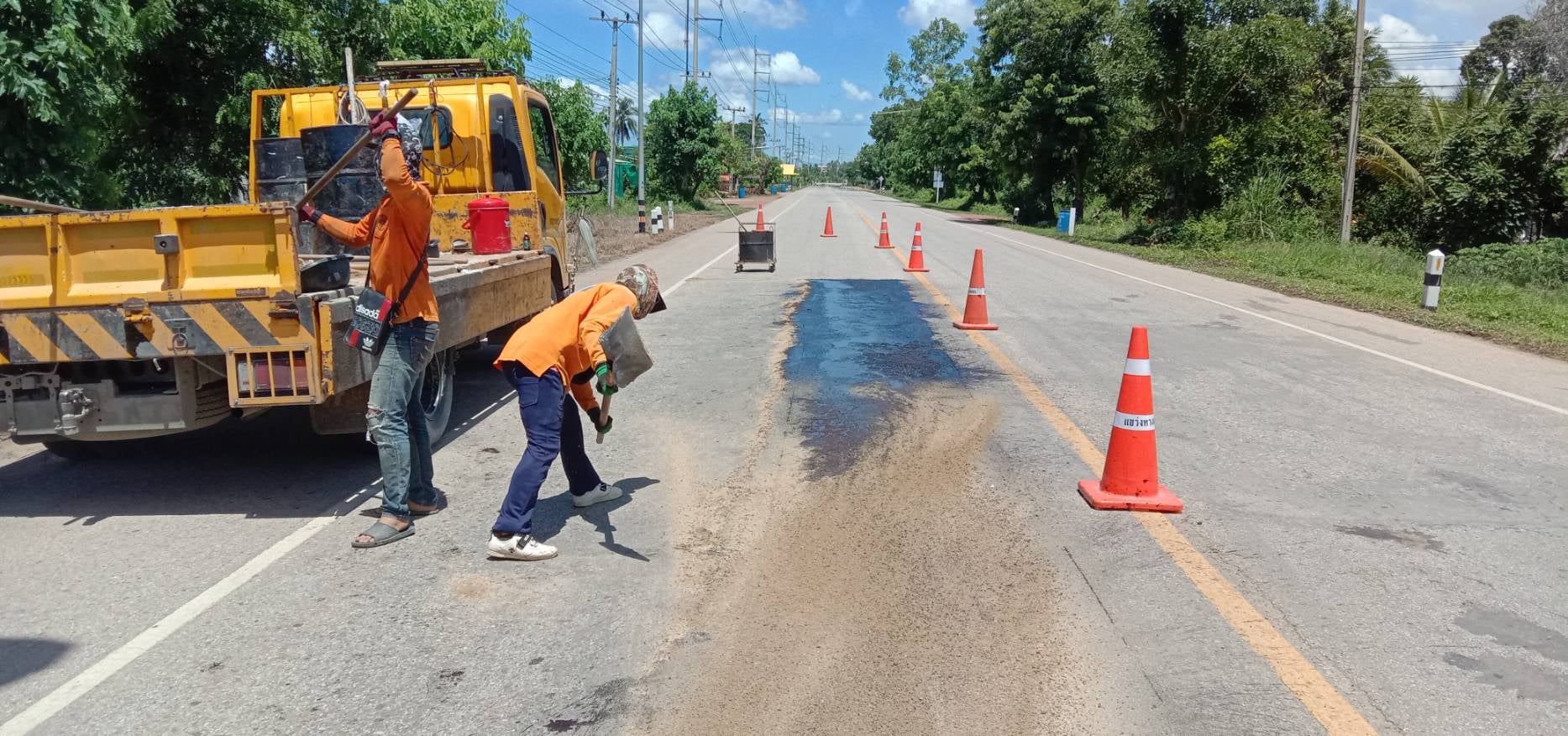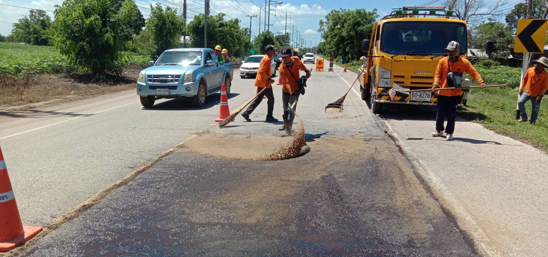 แขวงทางหลวงกำแพงเพชร โดย นายชัยศิริ ผูกใจเพื่อน ผู้อำนวยการแขวงทางหลวงกำแพงเพชร ได้มอบหมายให้หมวดทางหลวงคลองลานพัฒนา, หมวดทางหลวงคณฑี ดำเนินการปะซ่อมผิวทาง เพื่อให้ความสะดวกและปลอดภัยแก่ผู้ใช้เส้นทาง