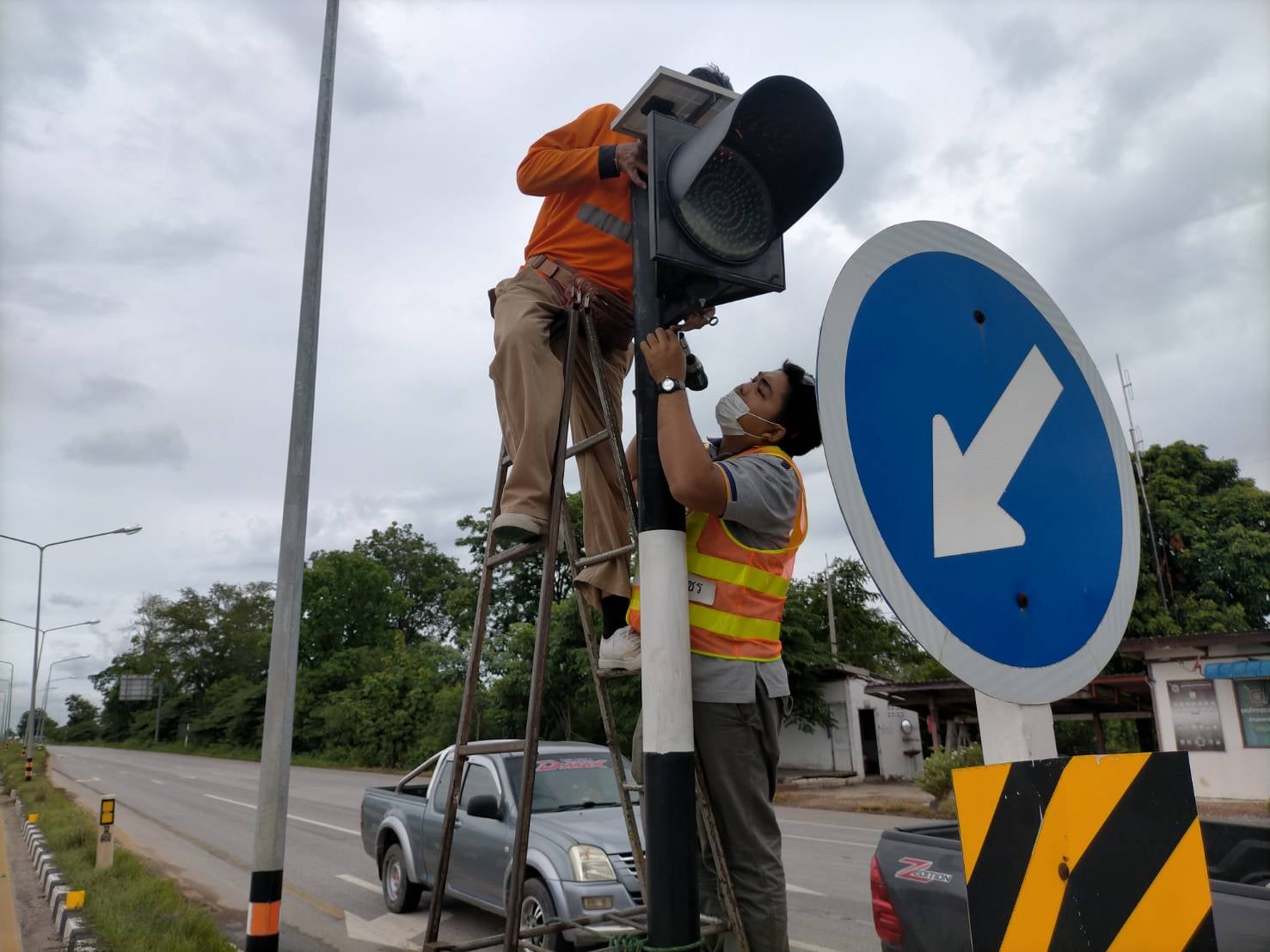 แขวงทางหลวงกำแพงเพชร โดย นายชัยศิริ ผูกใจเพื่อน ผู้อำนวยการแขวงทางหลวงกำแพงเพชร ได้มอบหมายให้งานปรับซ่อม ดำเนินการซ่อมแซมไฟสัญญาณจราจร(กระพริบ) เพื่อความสะดวก และความปลอดภัยแก่ผู้ใช้เส้นทาง
