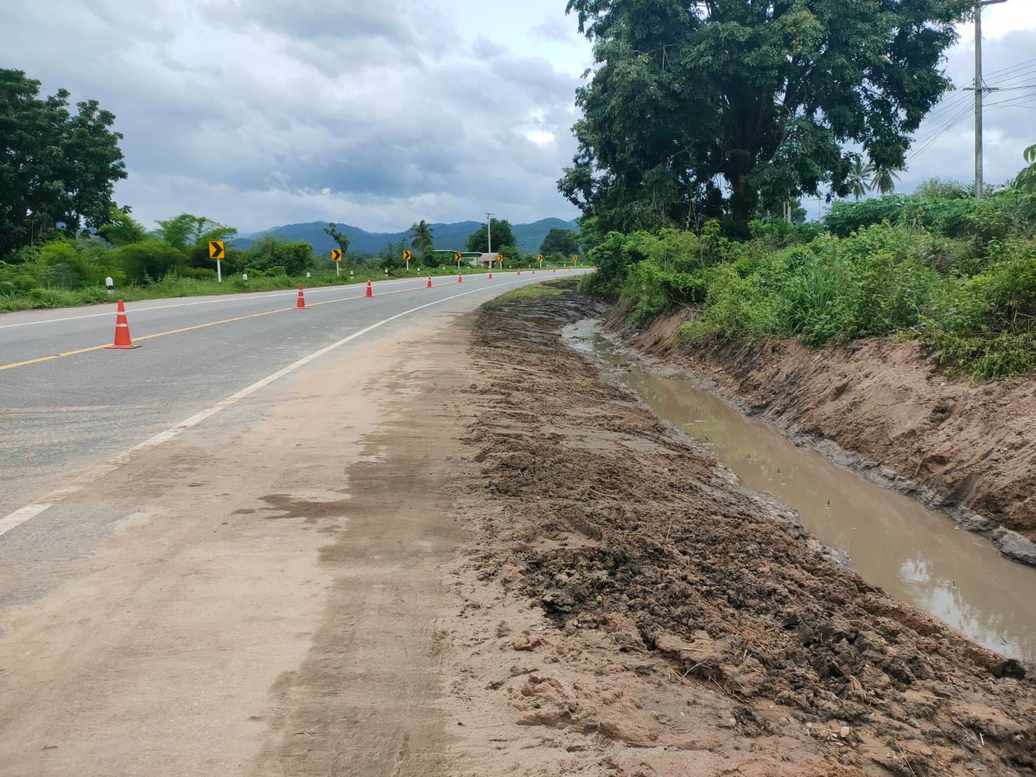 แขวงทางหลวงกำแพงเพชร โดย หมวดทางหลวงคลองลานพัฒนา ดำเนินการขุดลอกทางระบายน้ำ ทล.1117 ตอน คลองแม่ลาย - คลองลาน ระหว่าง กม.52+400 - กม.52+515 เพื่อให้ความสะดวกและปลอดภัยแก่ผู้ใช้เส้นทาง