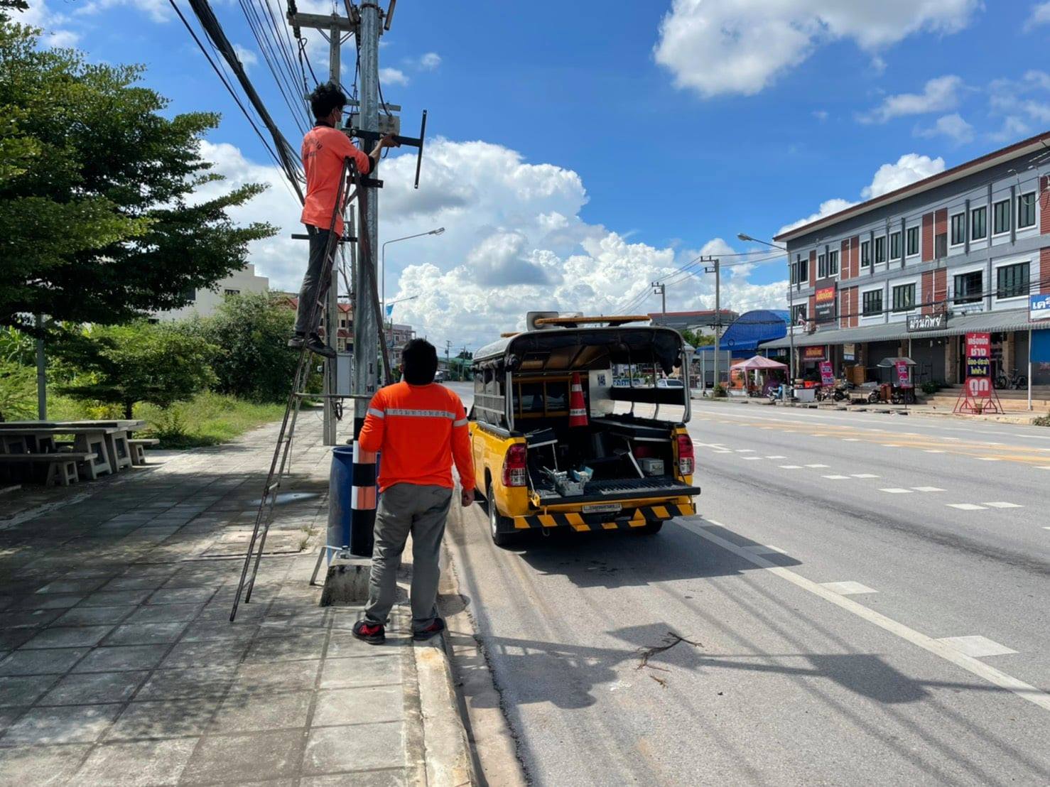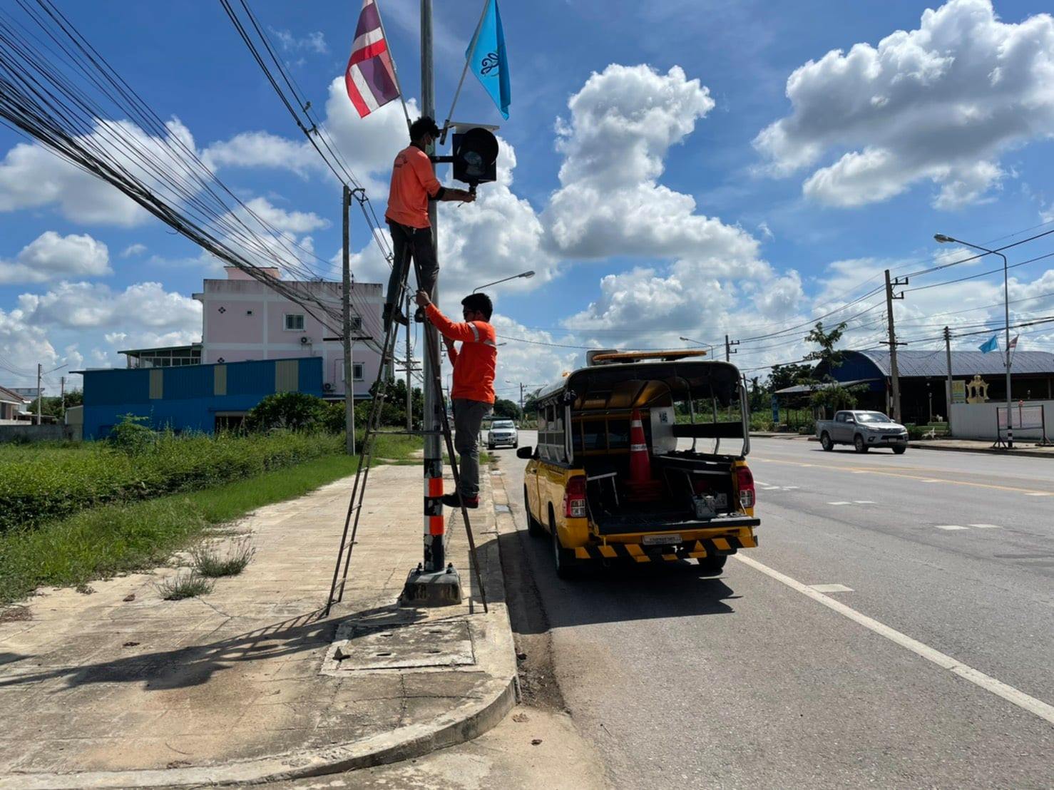 แขวงทางหลวงกำแพงเพชร โดย งานปรับซ่อม ดำเนินการติดตั้งไฟสัญญาณจราจรพลังงานแสงอาทิตย์ ทางหลวงหมายเลข 1084 ตอน หาดชะอม - กำแพงเพชร ระหว่าง กม.75+645 - กม.75+945 เพื่อความสะดวก และความปลอดภัยแก่ผู้ใช้เส้นทาง