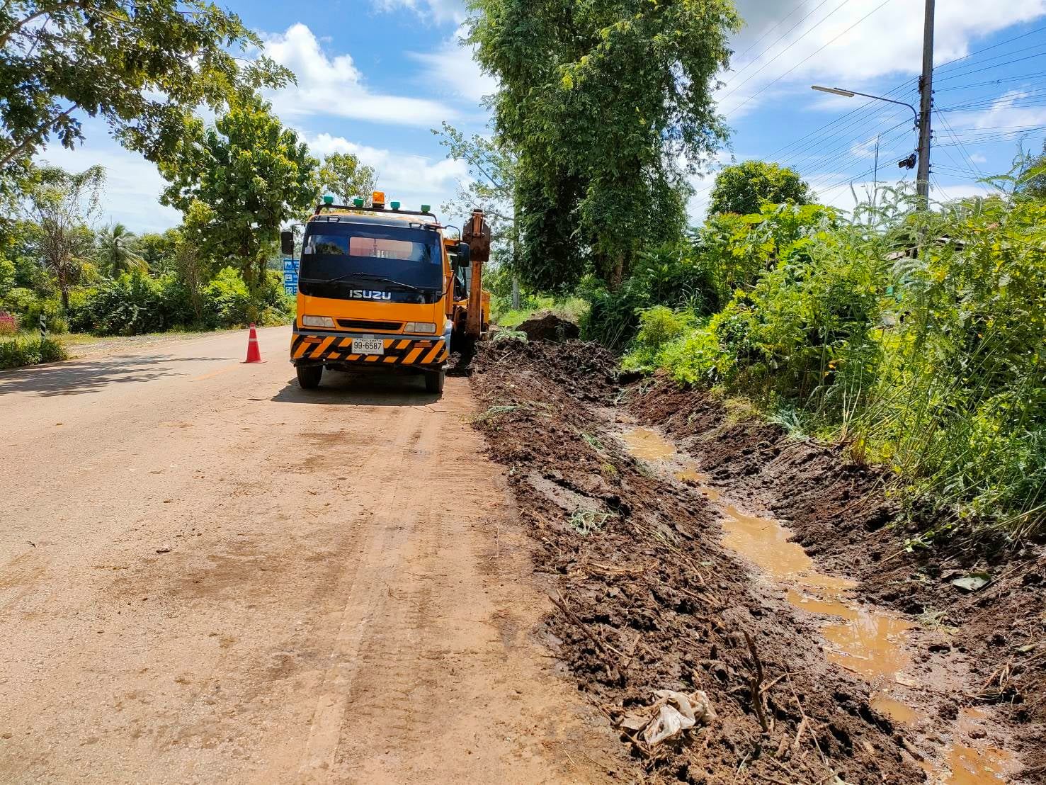 แขวงทางหลวงกำแพงเพชร โดย หมวดทางหลวงโกสัมพีนคร ดำเนินการขุดลอกทางระบายน้ำ ทางหลวงหมายเลข 1109 ตอน วังเจ้า - โละโคะ ระหว่าง กม.21+800 - กม.21+900 เพื่อให้ความสะดวกและปลอดภัยแก่ผู้ใช้เส้นทาง