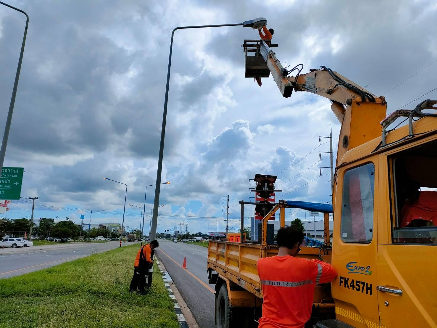 แขวงทางหลวงกำแพงเพชร โดย งานปรับซ่อม ดำเนินการซ่อมแซมเปลี่ยนอุปกรณ์ไฟฟ้าแสงสว่าง ทางหลวงหมายเลข 112 ตอนทางเลี่ยงเมืองกำแพงเพชร ระหว่าง กม.6+428 - กม.10+995 เพื่อความสะดวก และความปลอดภัยแก่ผู้ใช้เส้นทาง