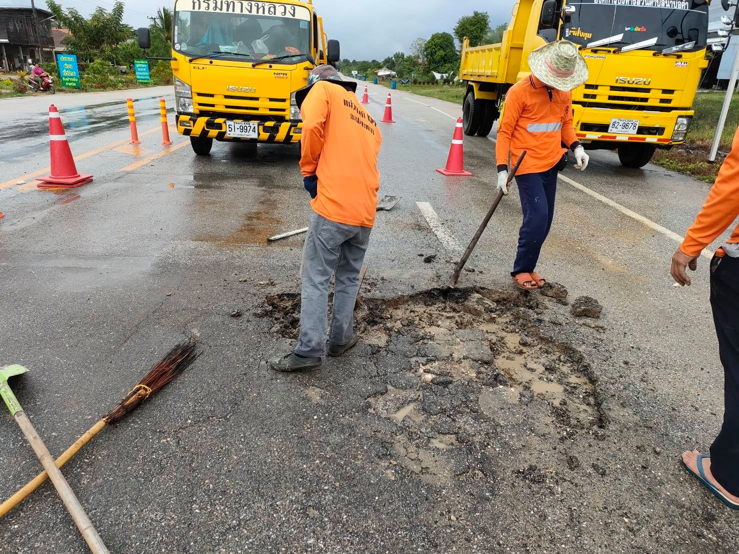 แขวงทางหลวงกำแพงเพชร โดย หมวดทางหลวงโกสัมพีนคร ดำเนินการปะซ่อมผิวทาง ทางหลวงหมายเลย 1116 ตอน มอเจริญ - หนองแดน ที่ กม.25+570 เพื่อให้ความสะดวกและปลอดภัยแก่ผู้ใช้เส้นทาง
