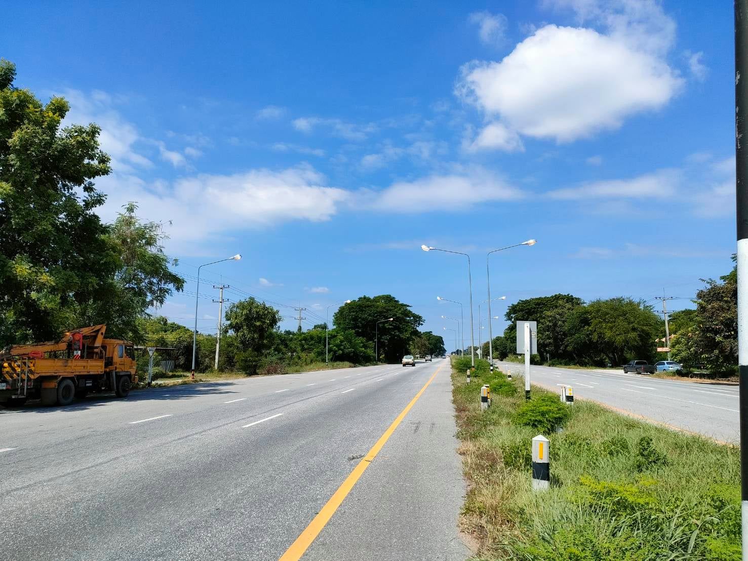 แขวงทางหลวงกำแพงเพชร โดย งานปรับซ่อม ดำเนินการซ่อมแซมเปลี่ยนอุปกรณ์ไฟฟ้าแสงสว่าง ทางหลวงหมายเลข 1 ตอน โนนปอแดง - ปากดงระหว่าง กม.386+450 - กม.386+675 เพื่อความสะดวก และความปลอดภัยแก่ผู้ใช้เส้นทาง