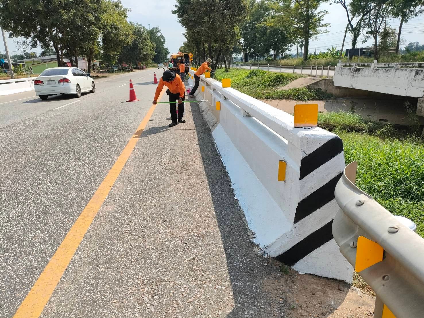 แขวงทางหลวงกำแพงเพชร โดย หมวดทางหลวงโกสัมพีนคร ดำเนินการทาสีสะพาน คสล. ทางหลวงหมายเลข 1 ตอน นครชุม - วังเจ้า ที่ กม.475+431 เพื่อความสะดวก และความปลอดภัยแก่ผู้ใช้เส้นทาง