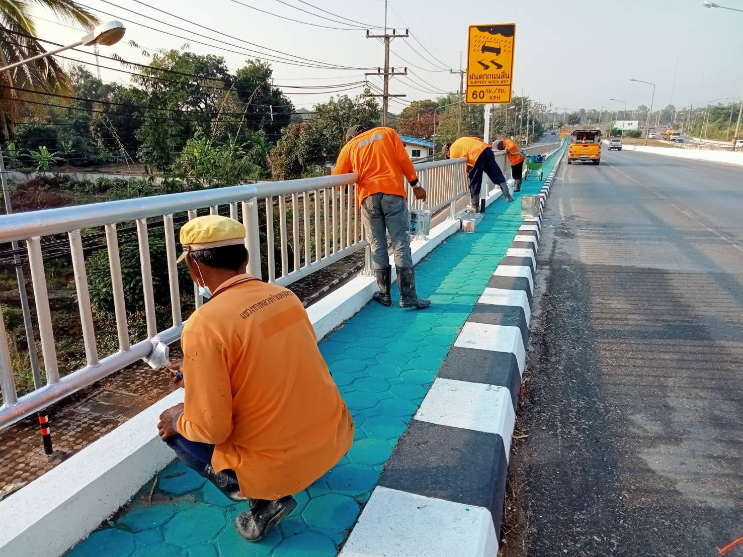 ข่าวประชาสัมพันธ์แขวงทางหลวงกำแพงเพชร วันที่ 21 มกราคม 2565 "แขวงฯ ดำเนินการทาสีราวกันอันตราย และเสาไฟฟ้าแสงสว่าง"