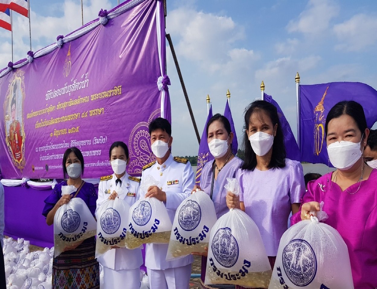 แขวงทางหลวงกำแพงเพชร ร่วมพิธีทำบุญตักบาตรถวายเป็นพระราชกุศล และพิธีปล่อยพันธุ์สัตว์น้ำ เฉลิมพระเกียรติสมเด็จพระนางเจ้าฯ พระบรมราชินี เนื่องในโอกาสวันเฉลิมพระชนมพรรษา ๓ มิถุนายน ๒๕๖๕