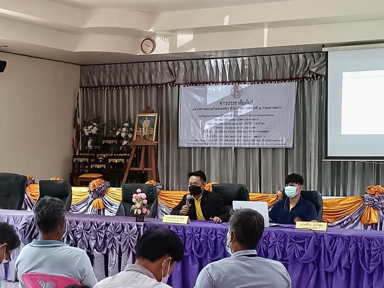ข่าวประชาสัมพันธ์ วันศุกร์ ที่ 8 กรกฎาคม 2565 เวลา 09.00 น. นายชัยศิริ ผูกใจเพื่อน ผู้อำนวยการแขวงทางหลวงกำแพงเพชร มอบหมายให้นายสุชาติ ตาทิพย์ รองผู้อำนวยการฝ่ายวิศวกรรม นำคณะหัวหน้าหมวดทางหลวง และเจ้าหน้าที่แขวงฯ จัดประชุมการมีส่วนร่วมของประชาชน เพื่อปรับปรุงขยายผิวทางจราจรจาก 2 ช่อง เป็น4 ช่องจราจร โครงการก่อสร้างเพิ่มประสิทธิภาพทางหลวง ทางหลวงหมายเลข 1242 ตอนโค้งวิไล-เขาน้ำอุ่น ระหว่าง กม.21+284-กม.23+074 ณ ห้องประชุมองค์การบริหารส่วนตำบลโพธิ์ทอง ในการนี้ ส.ต.ท.จักรพงษ์ ธาตุอินจันทร์ ปลัดองค์การบริหารส่วนตำบลโพธิ์ทอง เป็นประธานในพิธีเปิดการประชุม ซึ่งในที่ประชุม มีมติเห็นด้วยในการให้ดำเนินโครงการ