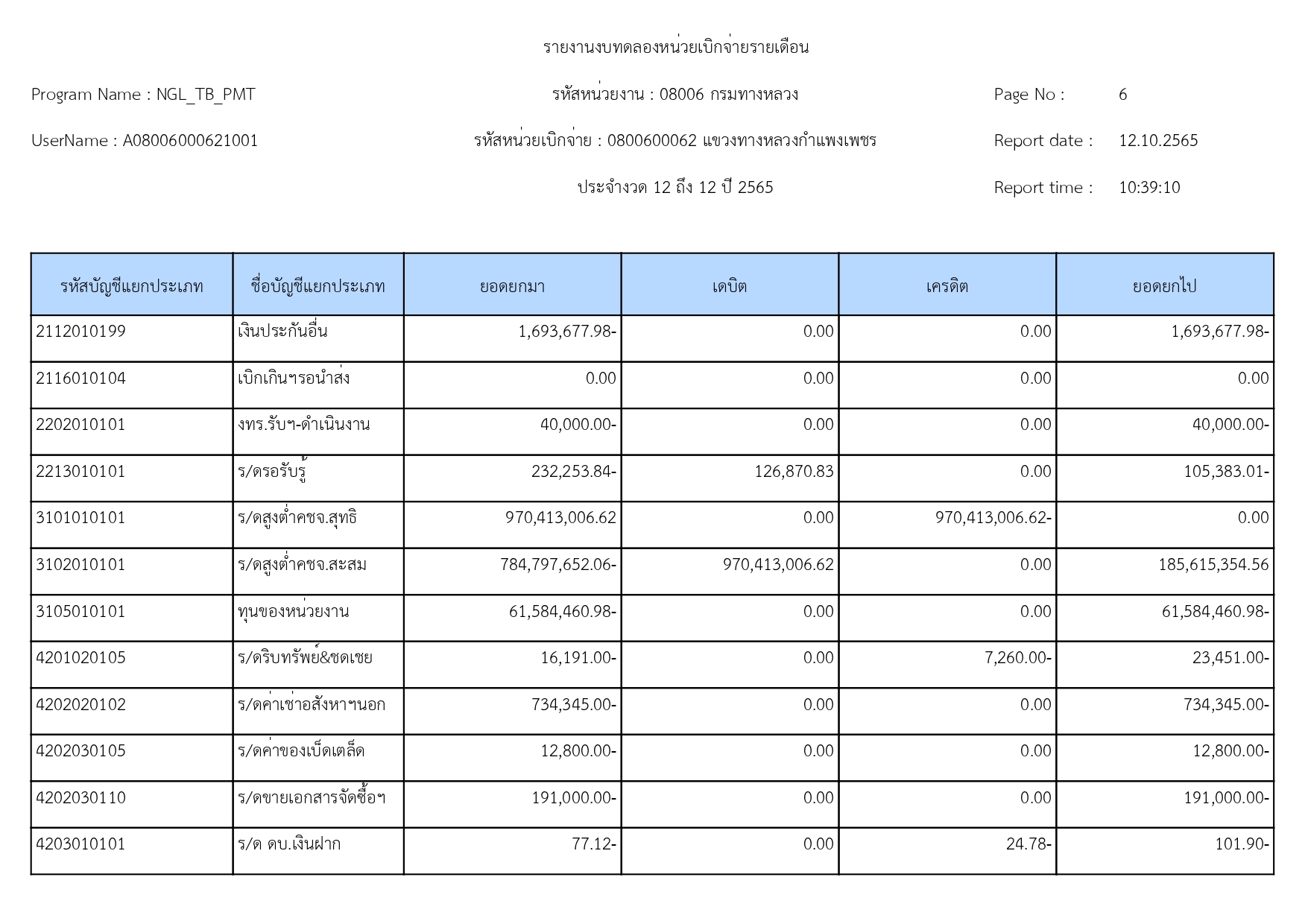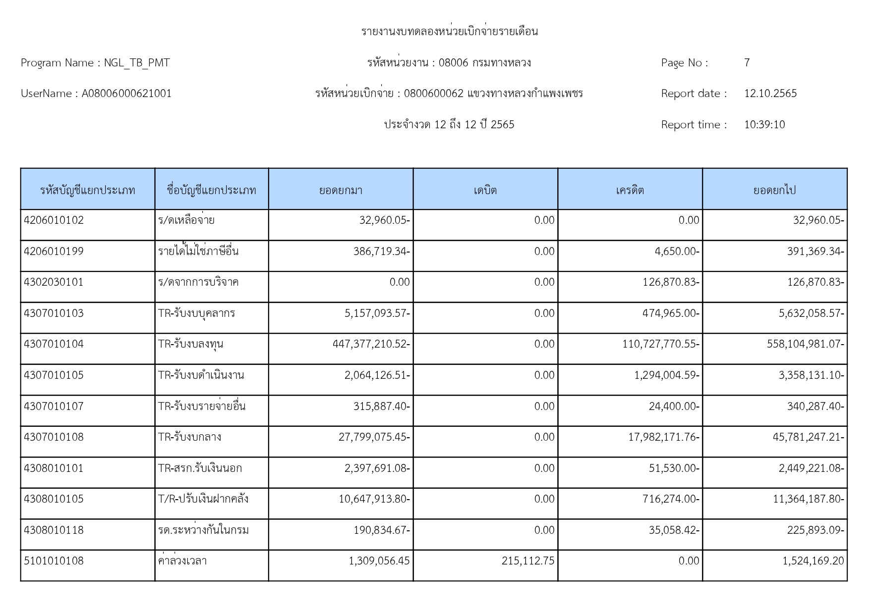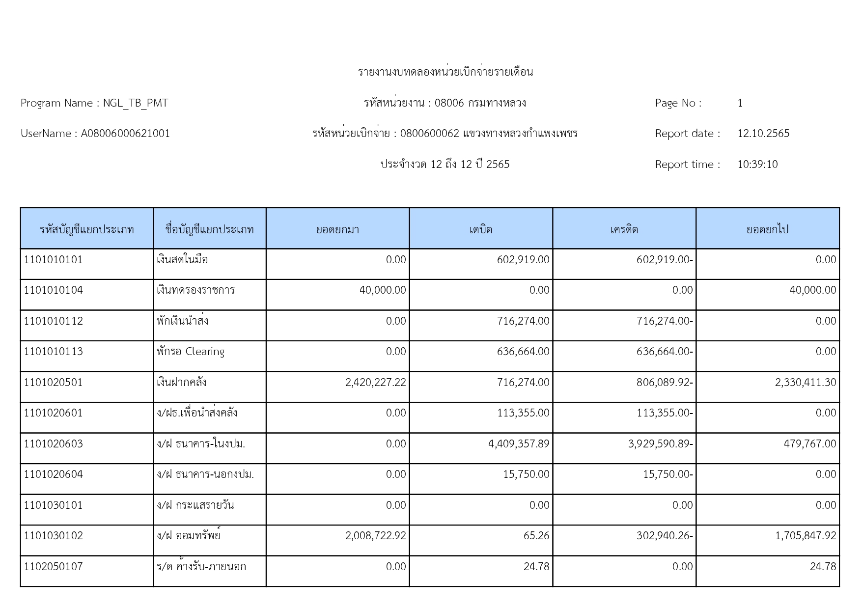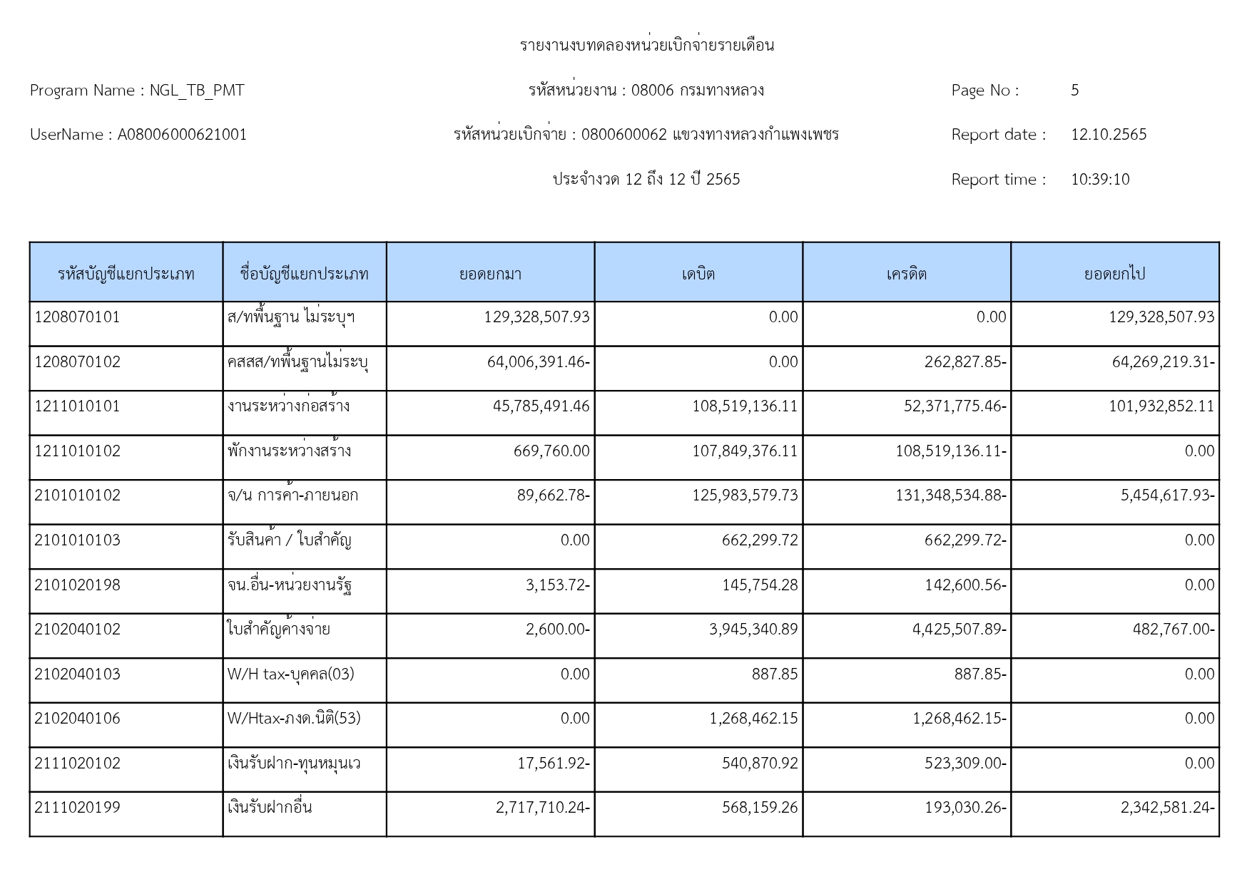 รายงานงบทดลองปีงบประมาณ 2565