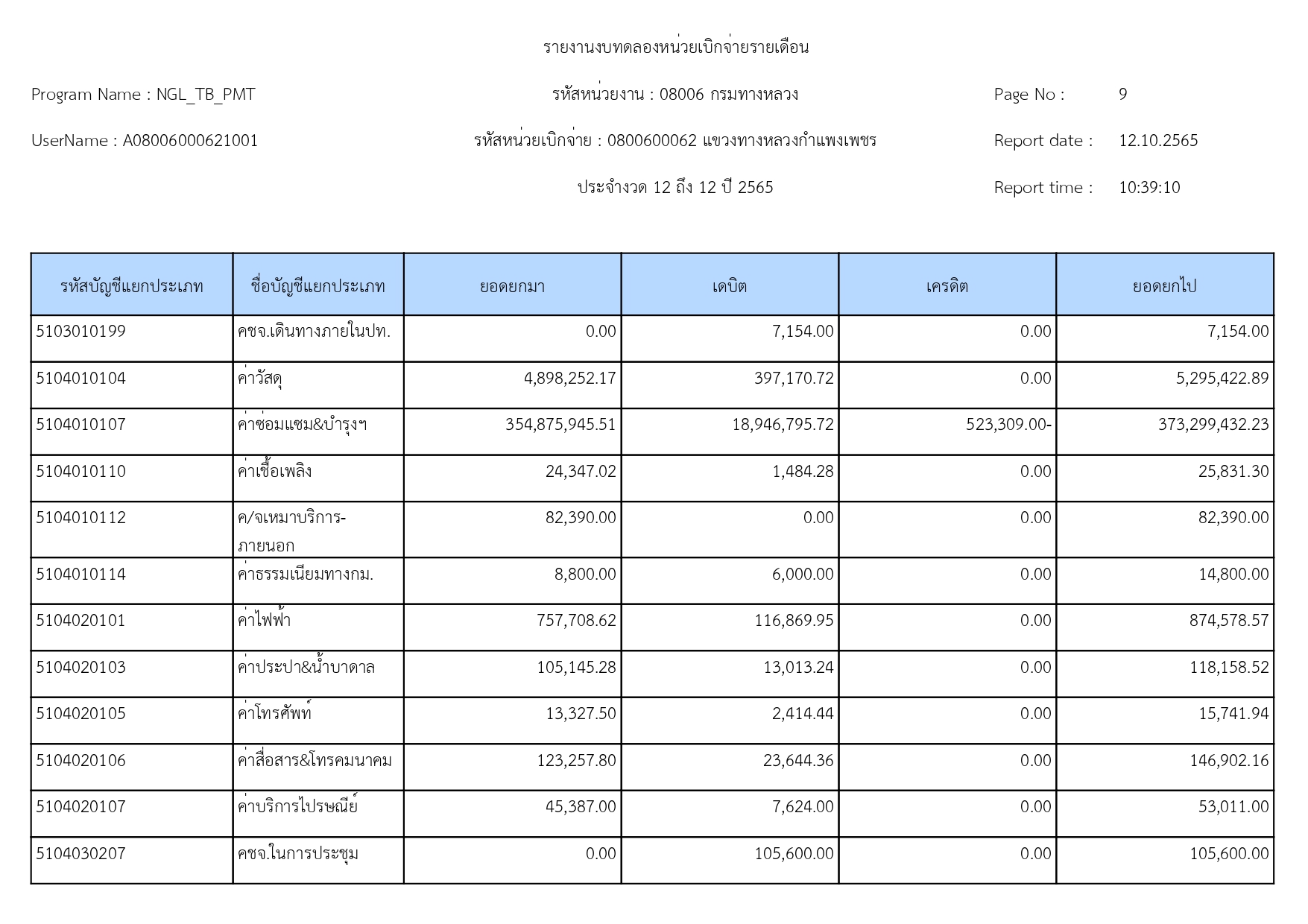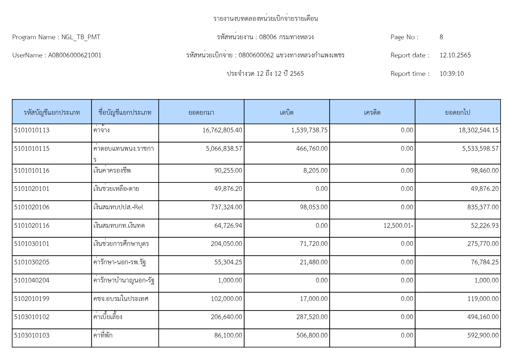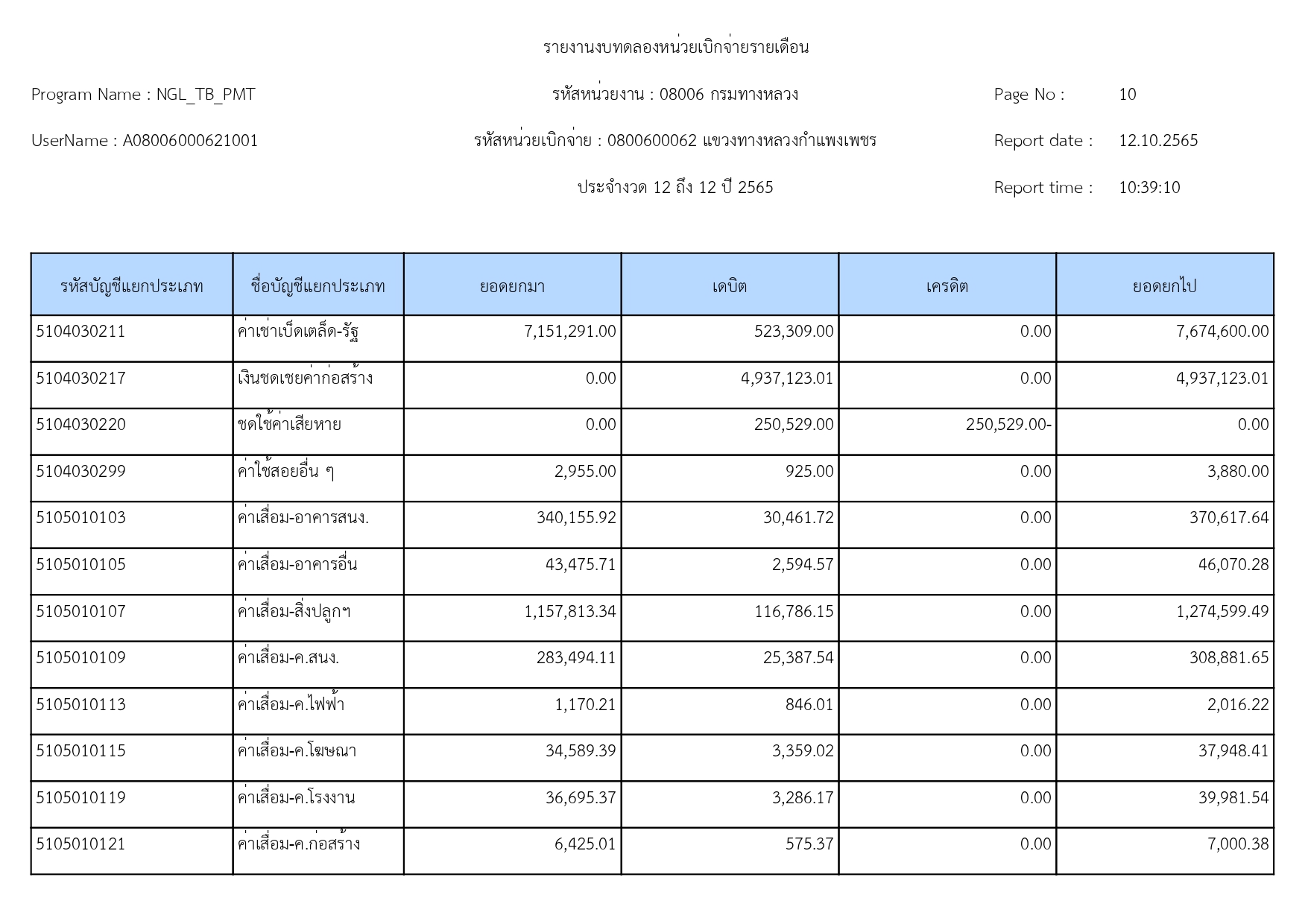 รายงานงบทดลองปีงบประมาณ 2565