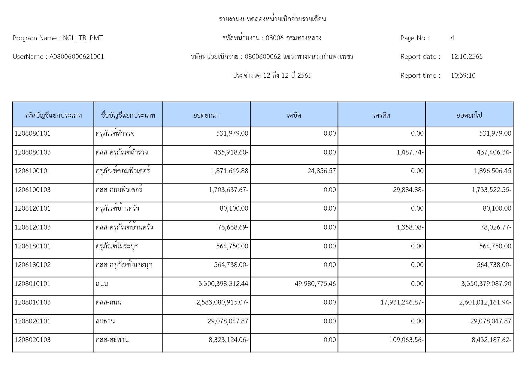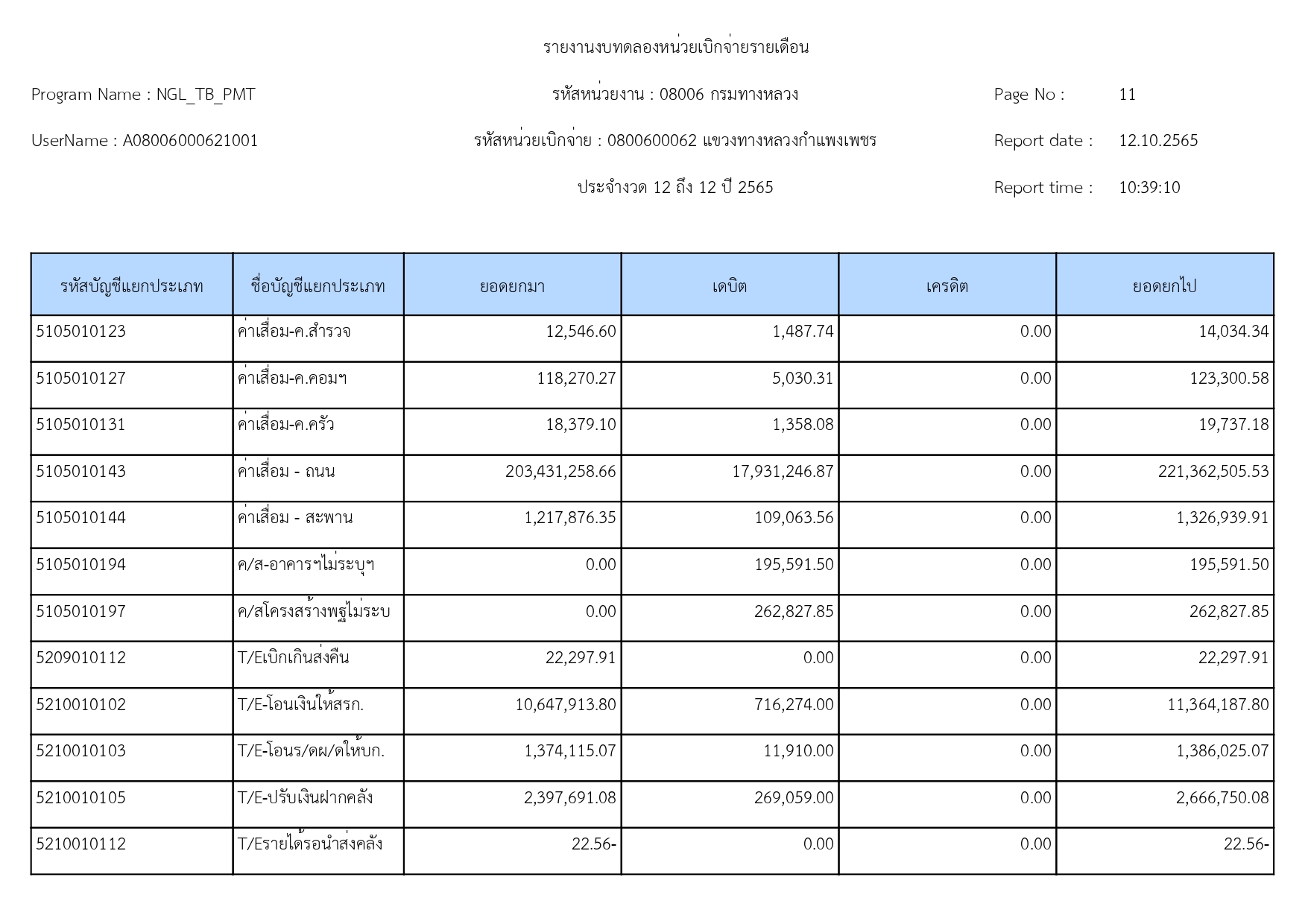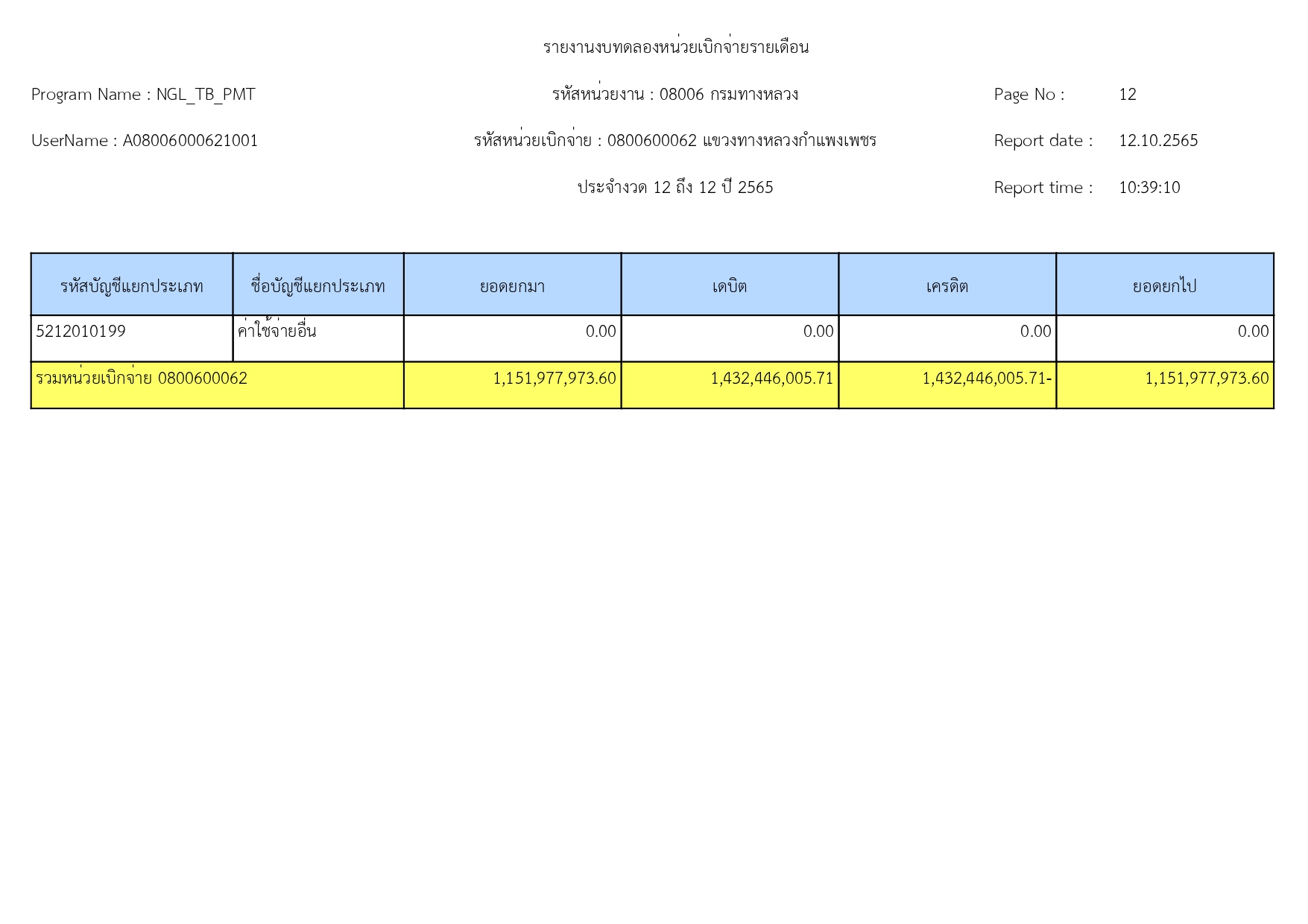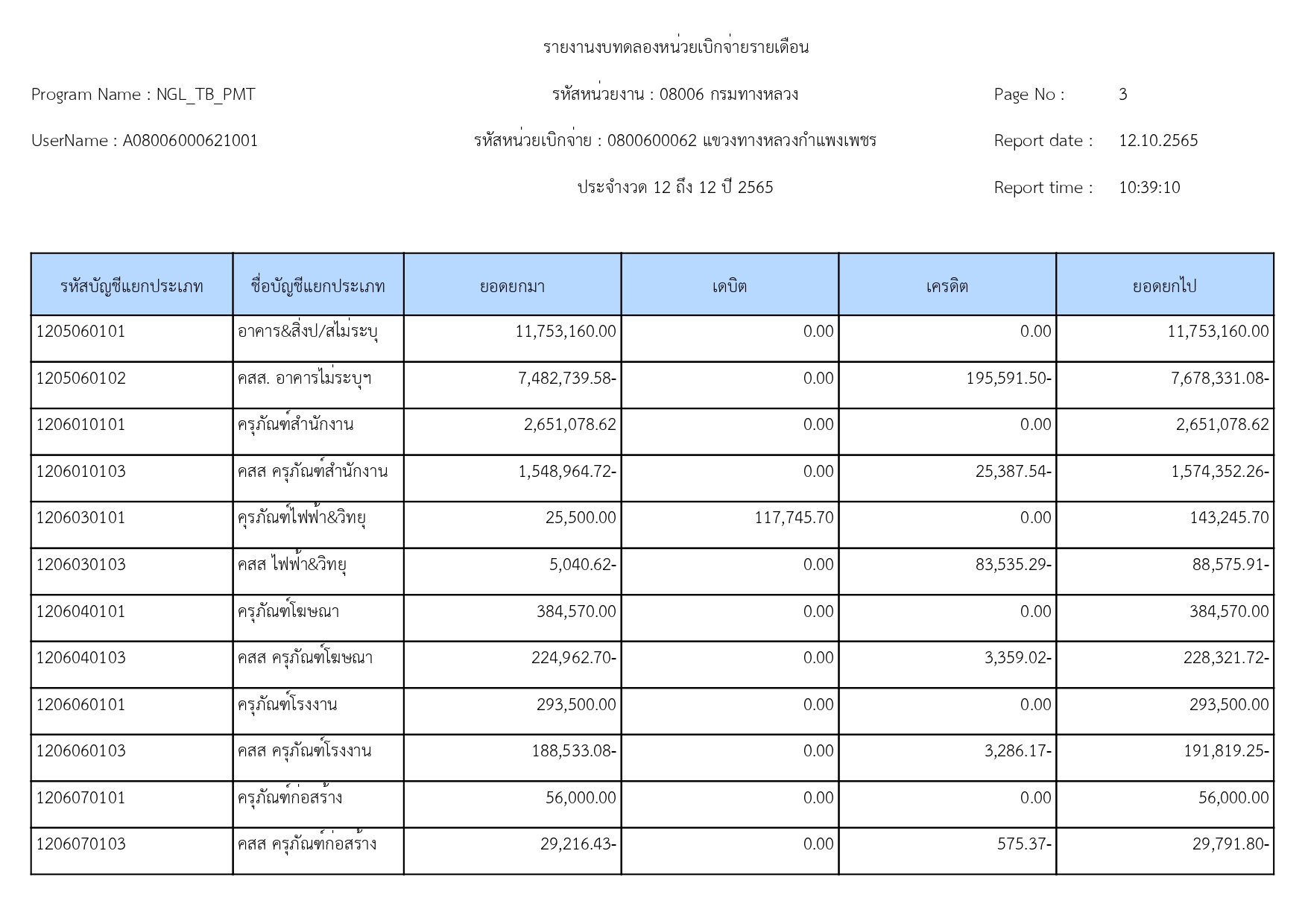 รายงานงบทดลองปีงบประมาณ 2565