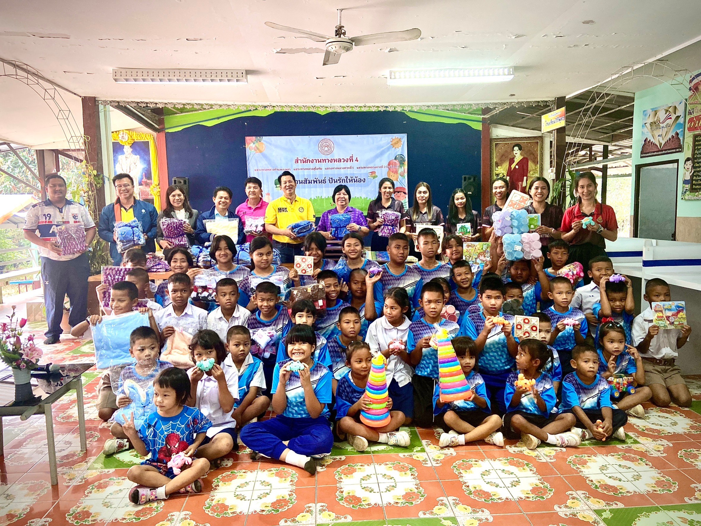 สำนักงานทางหลวงที่ 4 กรมทางหลวง นำโดย นายสิทธิโชค ลี้มิ่งสวัสดิ์ ผู้อำนวยการสำนักงานทางหลวงที่ 4(ตาก) พร้อมด้วยผู้อำนวยการแขวงทางหลวงในสังกัด, คณะผู้บริหาร และเจ้าหน้าที่ในสังกัด ร่วมจัดกิจกรรม “สานสัมพันธ์ ปันรักให้น้อง” ประจำปี 2567 โดยได้มีการมอบอุปกรณ์การเรียน อุปกรณ์กีฬา และมอบสิ่งของอื่นๆ ให้แก่นักเรียน โรงเรียนคีรีวงศ์วัฒนา ตำบลปางมะค่า อำเภอขาณุวรลักษบุรี จังหวัดกำแพงเพชร