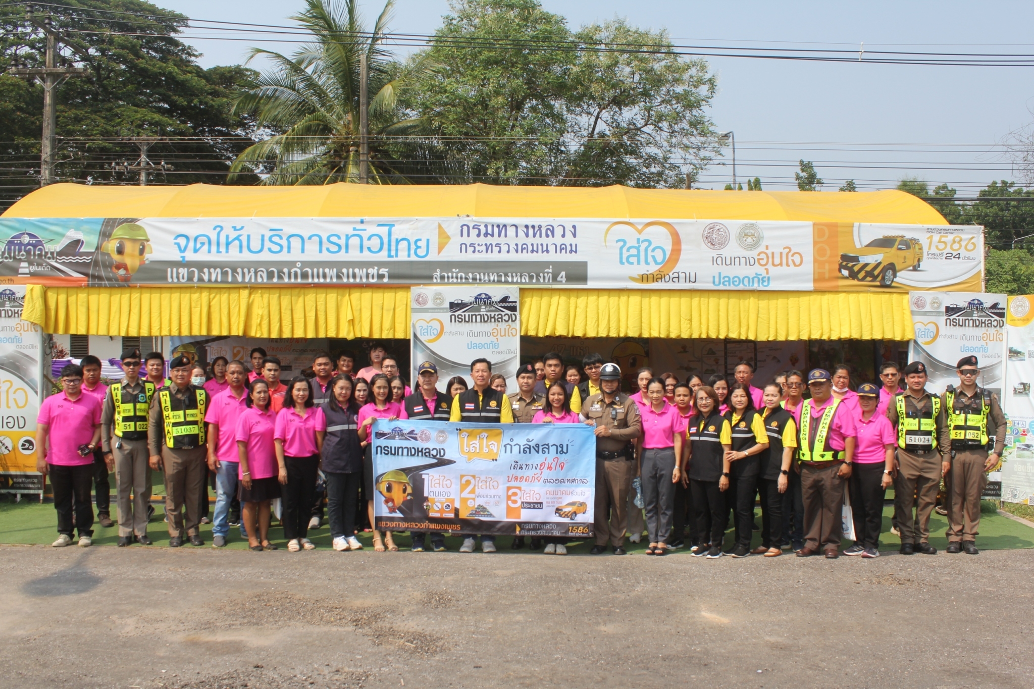 แขวงทางหลวงกำแพงเพชร ได้ดำเนินการเปิดศูนย์อำนวยความสะดวกและปลอดภัยช่วงเทศกาลสงกรานต์ พ.ศ.2567 ระหว่างวันที่ 11 เมษายน 2567 ถึงวันที่ 17 เมษายน 2567 เพื่ออำนวยความสะดวกและปลอดภัยให้แก่ประชาชนในการเดินทางช่วงเทศกาลสงกรานต์ ณ บริเวณริมทางหลวงหมายเลข 1 ตอนปากดง - นครชุม ที่ กม.453+076 (ขาขึ้น) ด้านหน้าสำนักงานแขวงทางหลวงกำแพงเพชร โดยมีนายสิทธิโชค ลี้มิ่งสวัสดิ์ ผู้อำนวยการสำนักงานทางหลวงที่ 4(ตาก) ให้เกียรติเป็นประธานในพิธีเปิด พร้อมด้วยนายชัยศิริ ผูกใจเพื่อน ผู้อำนวยการแขวงทางหลวงกำแพงเพชร, รองผู้อำนวยการแขวงฯ, หัวหน้าทุกหมวดทางหลวง และเจ้าหน้าที่ในสังกัด โดยมีเจ้าหน้าที่ตำรวจภูธรเมืองกำแพงเพชร และเจ้าหน้าที่ตำรวจทางหลวง ร่วมอำนวยความสะดวกด้านการจราจร และเข้าร่วมพิธีเปิดฯ
