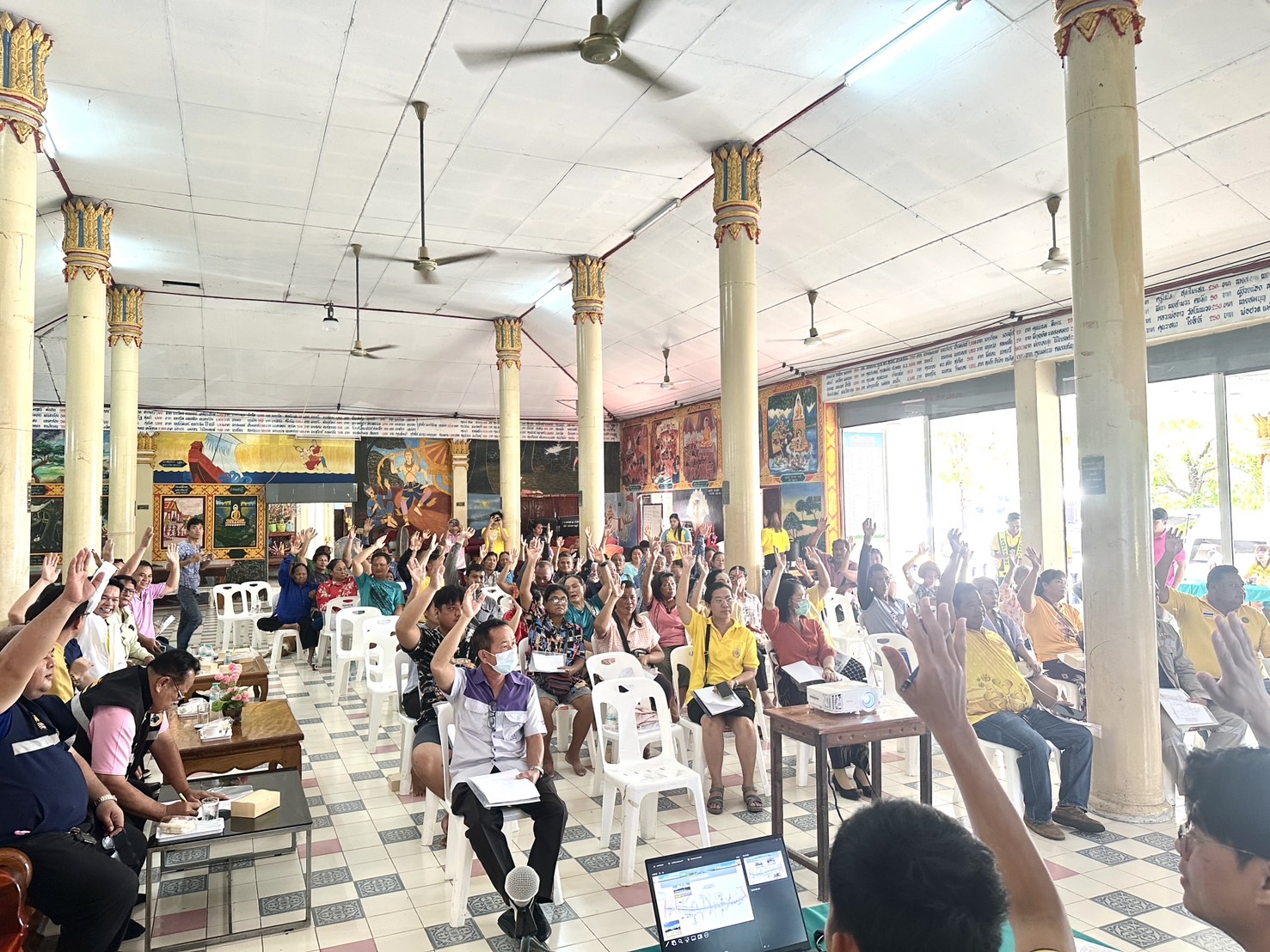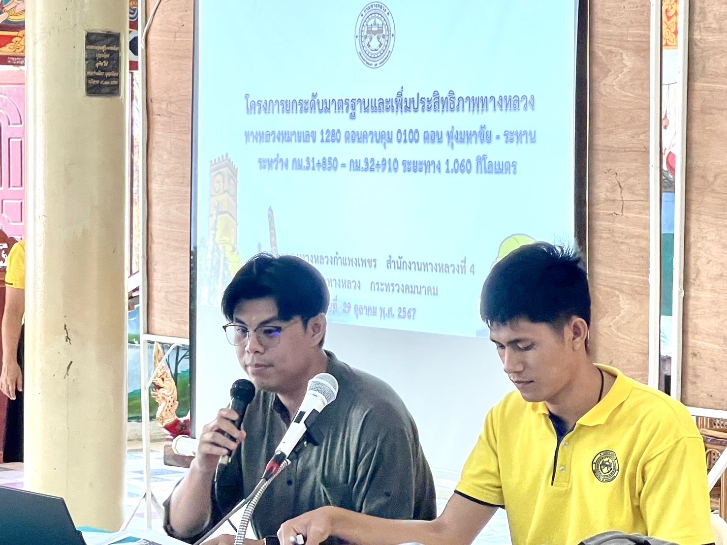นายชัยศิริ ผูกใจเพื่อน ผู้อำนวยการแขวงทางหลวงกำแพงเพชร พร้อมด้วยนายเดชา กุลกิจวโรภาส รองผู้อำนวยการฝ่ายปฏิบัติการ, นายสุชาติ ตาทิพย์ รองผู้อำนวยการฝ่ายวิศวกรรม, นางปารียา เกตุทิม รองผู้อำนวยการฝ่ายบริหาร และหัวหน้าหมวดทางหลวงบ่อทอง นำคณะเจ้าหน้าที่ในสังกัด จัดประชุมการมีส่วนร่วมของประชาชน โครงการยกระดับมาตรฐานและเพิ่มประสิทธิภาพทางหลวง โดยทำการก่อสร้างเพิ่มช่องจราจร จาก 2 ช่องจราจร เป็น 4 ช่องจราจร บริเวณทางหลวงหมายเลข 1280 ตอนควบคุม 0100 ตอนทุ่งมหาชัย-ระหาน ระหว่าง กม.31+850 - กม.32+910 รวมระยะทาง 1.060 กิโลเมตร ในพื้นที่ตำบลระหาน อำเภอบึงสามัคคี จังหวัดกำแพงเพชร ณ วัดก้องประชาราษฎร์ ในการนี้นางวันทนีย์ ธีรพงศ์สกล ปลัดอำเภอบึงสามัคคี ให้เกียรติเป็นประธานในพิธีเปิดการประชุม ซึ่งในที่ประชุมมีมติเห็นด้วยในการให้ดำเนินโครงการ