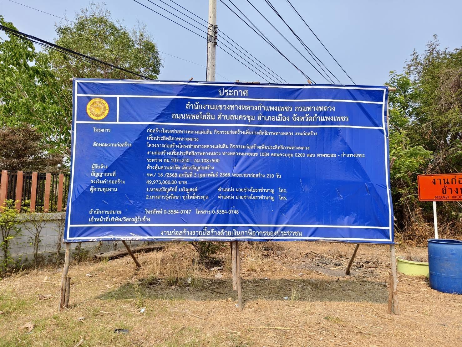 ข่าวประชาสัมพันธ์แขวงทางหลวงกำแพงเพชร วันที่ 4 เมษายน 2568 "ร่วมตรวจติดตามลงพื้นที่โครงการก่อสร้าง งานสัญญาเลขที่ กพ./16/2568 ทางหลวงหมายเลข 1084 ตอนหาดชะอม -กำแพงเพชร ระหว่าง กม.107+250-กม.108+500"