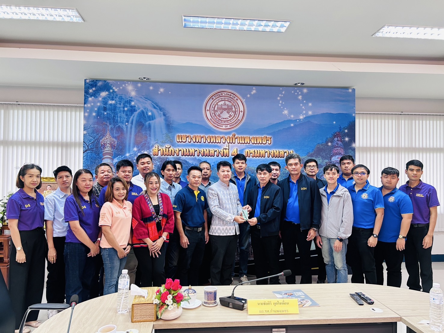 นายชัยศิริ ผูกใจเพื่อน ผู้อำนวยการแขวงทางหลวงกำแพงเพชร พร้อมด้วยนายสุชาติ ตาทิพย์ รองผู้อำนวยการ ฝ่ายวิศวกรรม, ผู้แทนจากสำนักงานทางหลวงที่ 4(ตาก), หัวหน้าหมวดทางหลวง และเจ้าหน้าที่ที่เกี่ยวข้อง เข้าร่วมรับฟัง “ประชาสัมพันธ์สัญจร ครั้งที่ 2 ประจำปีงบประมาณ พ.ศ.2568 เรื่องการบริหารงานเงินทุนหมุนเวียนค่าเครื่องจักรกลของกรมทางหลวง” เพื่อยกระดับความพึงพอใจและความผูกพันของกลุ่มผู้ใช้บริการและกลุ่มผู้มีส่วนได้ส่วนเสีย รวมทั้งส่งเสริมภาพลักษณ์เงินทุนหมุนเวียนฯ ให้เป็นที่รับรู้มากขึ้น โดยมีคณะทำงานประชาสัมพันธ์สัญจร สำนักเครื่องกลและสื่อสาร ส่วนบริหารเครื่องจักรกล กรมทางหลวง เป็นผู้บรรยายฯ ณ ห้องประชุมแขวงทางหลวงกำแพงเพชร