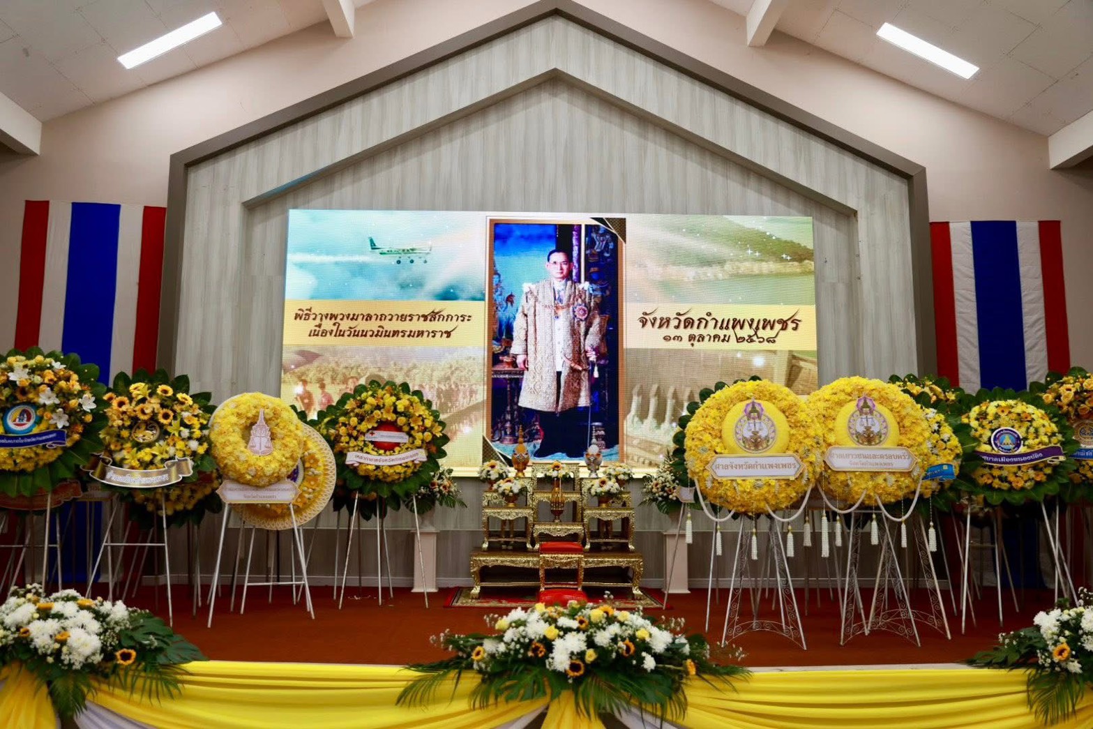 นายชัยศิริ ผูกใจเพื่อน ผู้อำนวยการแขวงทางหลวงกำแพงเพชร มอบหมายให้เจ้าหน้าที่ฝ่ายวิศวกรรม เข้าร่วมพิธีวางพวงมาลาและถวายสดุดี เนื่องในวันนวมินทรมหาราช วันคล้ายวันสวรรคต พระบาทสมเด็จพระบรมชนกาธิเบศร มหาภูมิพลอดุลยเดชมหาราช บรมนาถบพิตร ๑๓ ตุลาคม ๒๕๖๘ โดยมีนายชาธิป รุจนเสรี ผู้ว่าราชการจังหวัดกำแพงเพชร เป็นประธานในพิธีฯ ณ หอประชุมใหญ่ ศูนย์ราชการจังหวัดกำแพงเพชร