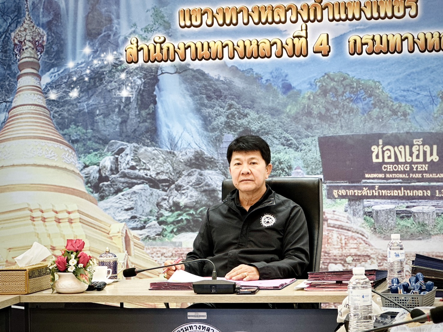 นายชัยศิริ ผูกใจเพื่อน ผู้อำนวยการแขวงทางหลวงกำแพงเพชร พร้อมด้วยนายสุชาติ ตาทิพย์ รองผู้อำนวยการฝ่ายวิศวกรรม, นางปารียา เกตุทิม รองผู้อำนวยการฝ่ายบริหาร และเจ้าหน้าที่ในสังกัด เข้าร่วมประชุมผู้บริหารกรมทางหลวง ประจำเดือน ธันวาคม 2568 ผ่านสื่ออิเล็กทรอนิกส์ ระบบ ZOOM CLOUD MEETING ณ ห้องประชุมแขวงทางหลวงกำแพงเพชร ชั้น 3 โดยมีนายปิยพงษ์ จิวัฒนกุลไพศาล อธิบดีกรมทางหลวง เป็นประธานการประชุม
