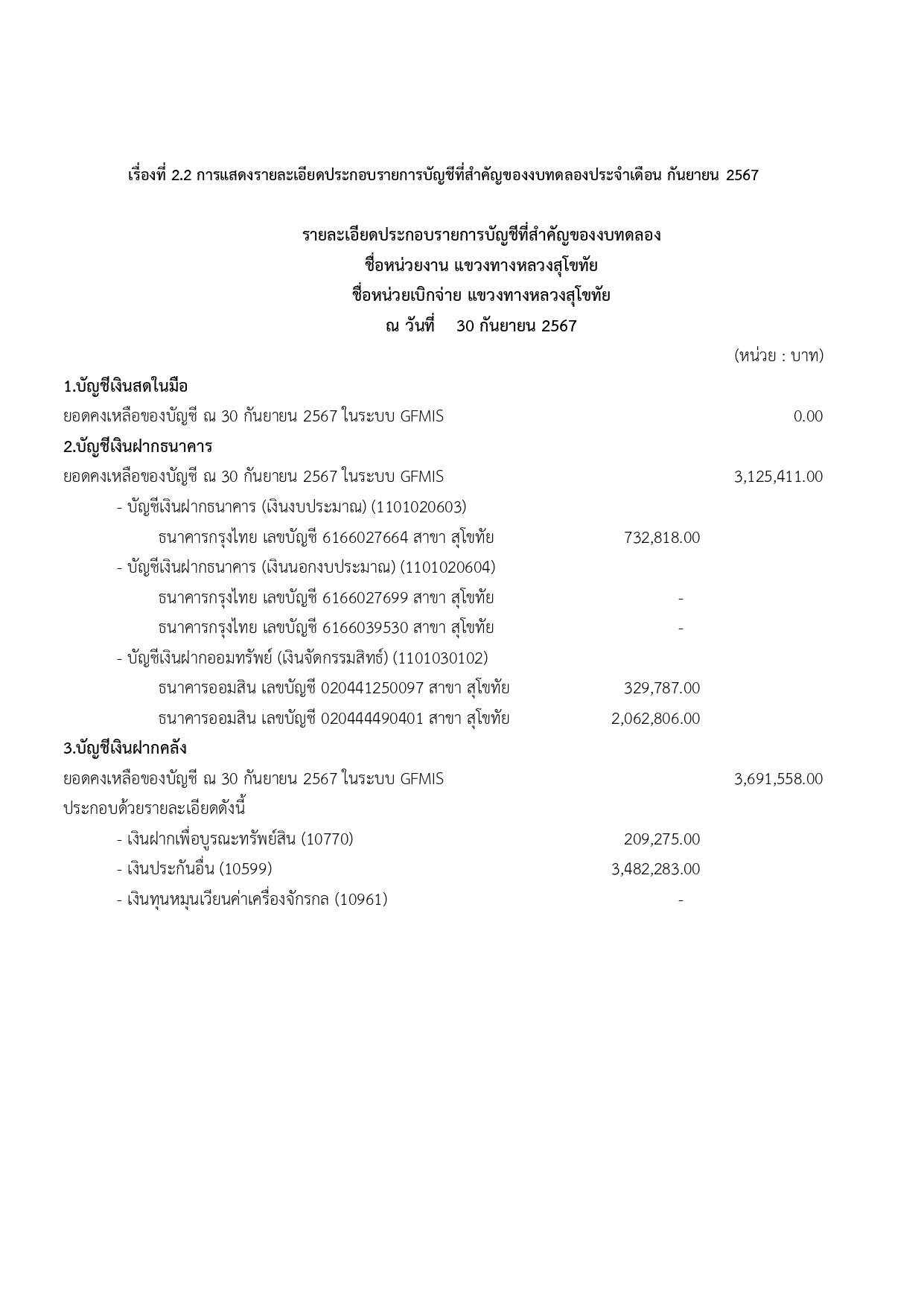 8 10/10/2567 รายละเอียดประกอบรายการบัญชีที่สำคัญของงบทดลอง แขวงทางหลวงสุโขทัย ณ วันที่ 30 กันยายน 2567