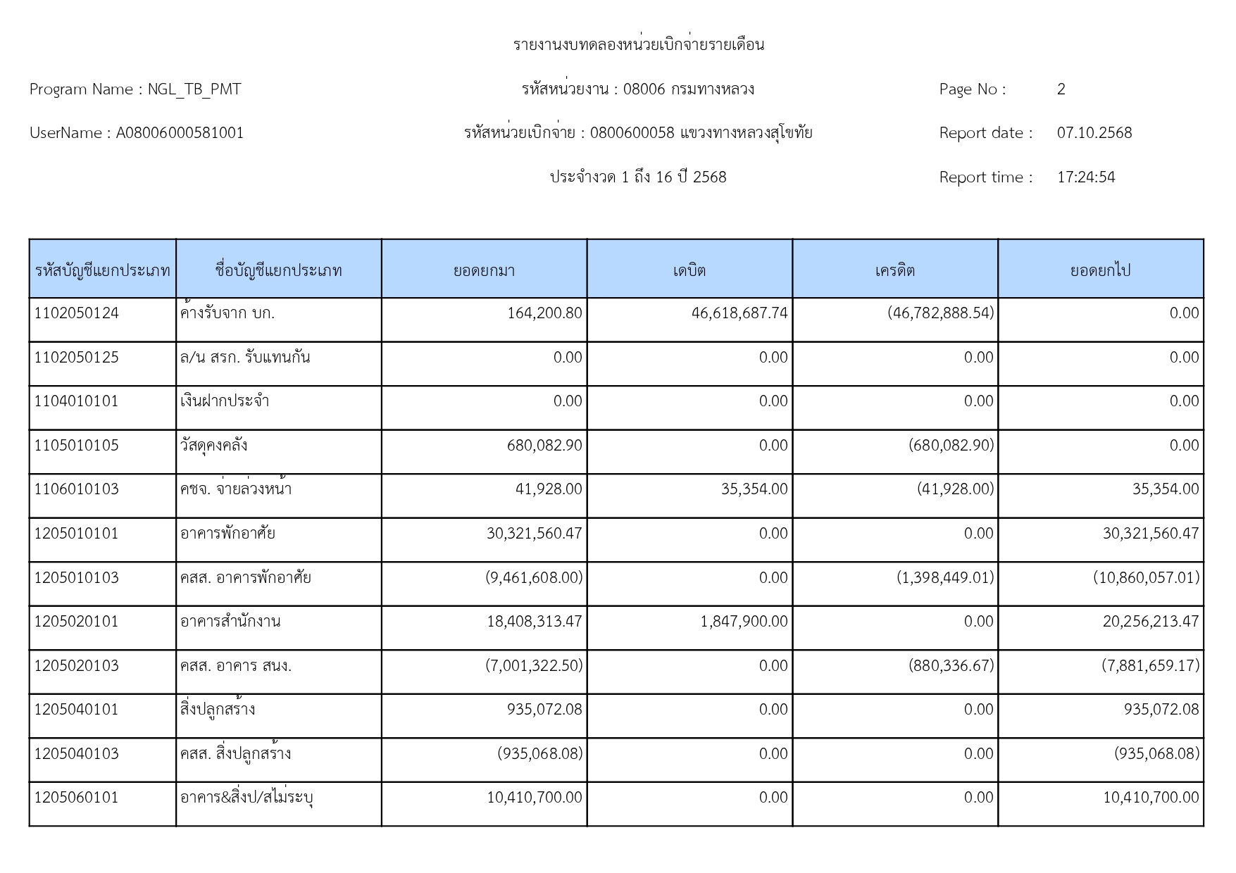 5 09/10/2568 รายละเอียดประกอบรายการบัญชีที่สำคัญของงบทดลอง แขวงทางหลวงสุโขทัย ณ วันที่ 30 กันยายน 2568