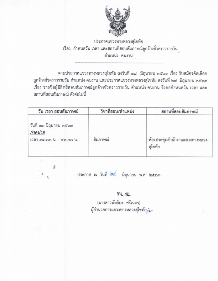 ประกาศรายชื่อและวันสอบสัมภาษณ์