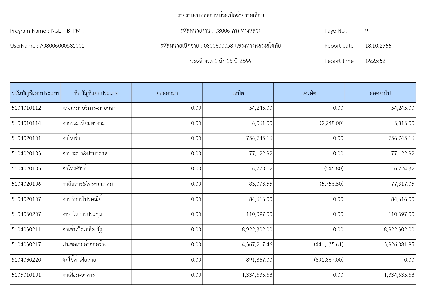 ข้อมูลข่าว : งบทดลองแขวงทางหลวงสุโขทัย ประจำปีงบประมาณ 2566