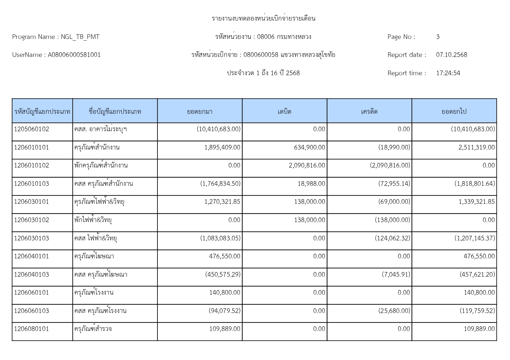 ข้อมูลข่าว : รายละเอียดประกอบรายการบัญชีที่สำคัญของงบทดลอง แขวงทางหลวงสุโขทัย ณ วันที่ 30 กันยายน 2568