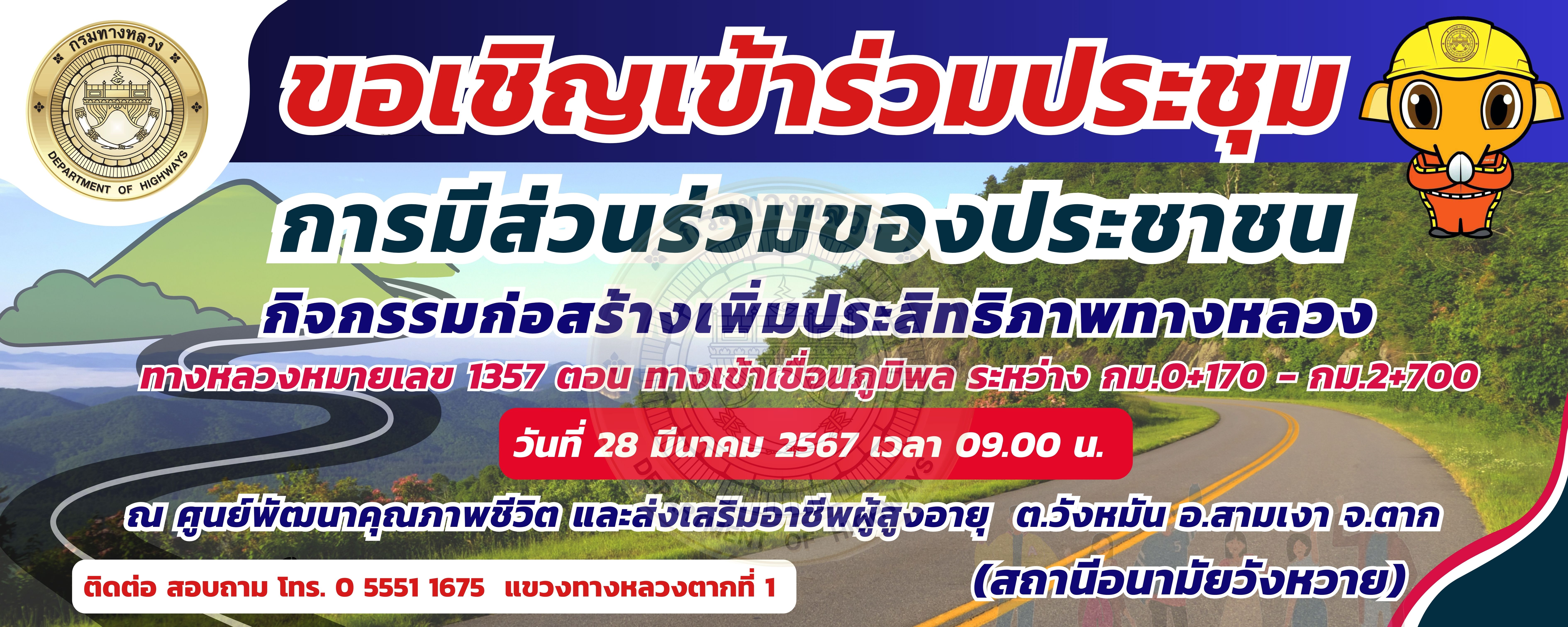 วิสัยทัศน์ : บำรุงรักษาเป็นเยี่ยม ความปลอดภัยบนถนนเป็นเลิศ เชิดชูเศรษฐกิจ การท่องเที่ยวเมืองตากให้ก้าวไกล