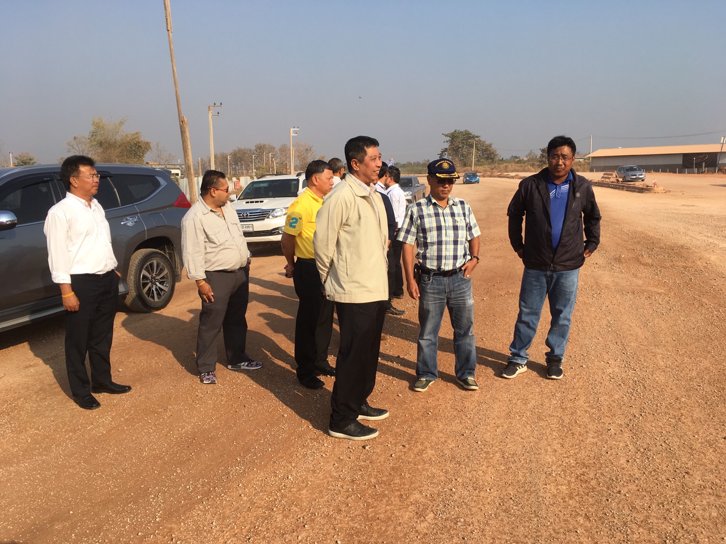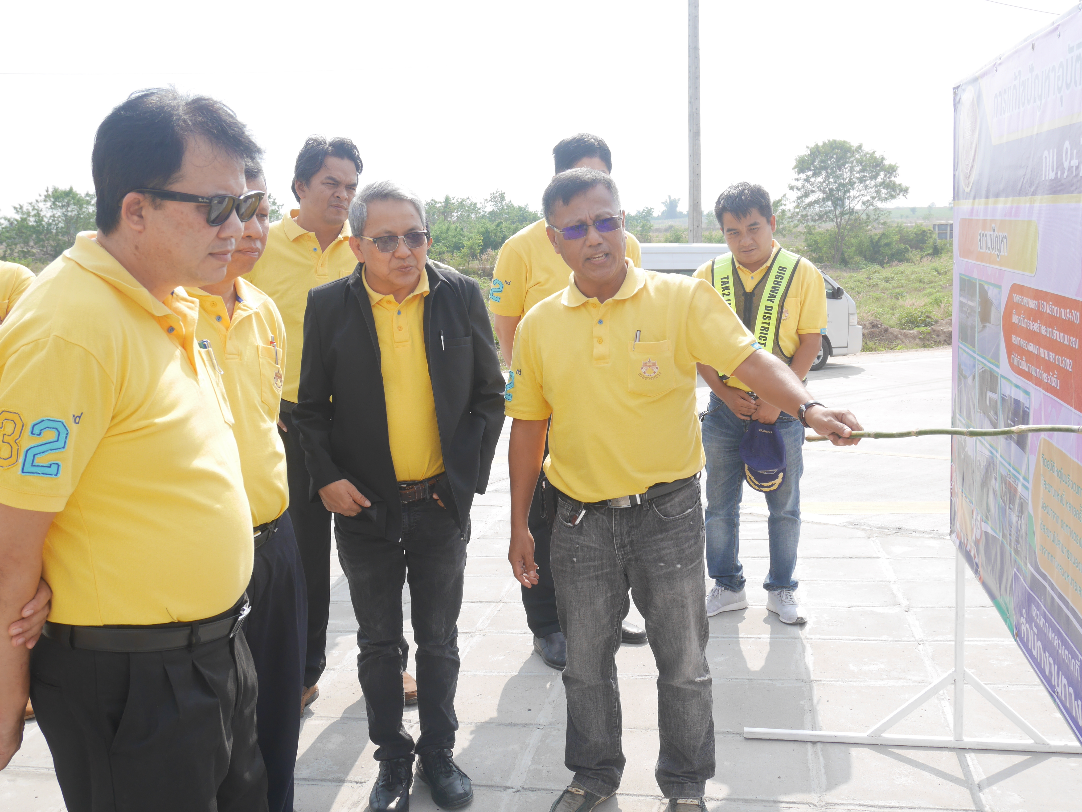 ดร.สนิท ทองมา ผู้อำนวยการแขวงทางหลวงตากที่ 2 (แม่สอด) ให้การต้อนรับ นายประมณฑ์ สถาพรนานนท์ วิศวกรใหญ่ด้านสำรวจและออกแบบ นายสมพร รัตนบุรี ผู้อำนวยการสำนักสำรวจและออกแบบ