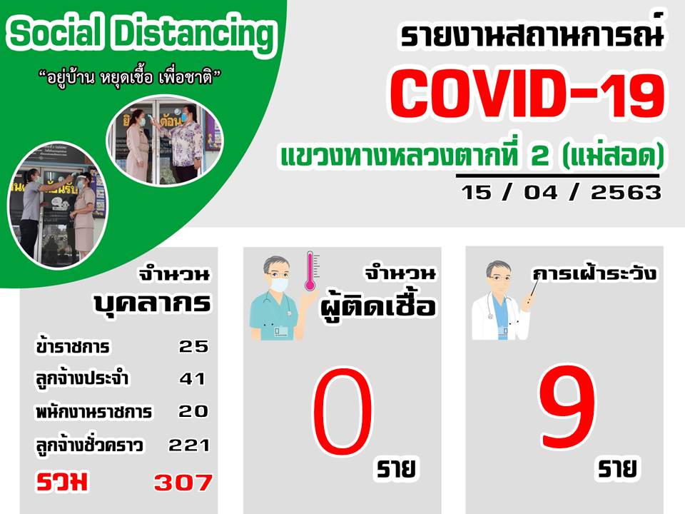 แขวงทางหลวงตากที่ 2 (แม่สอด) ขอรายงานสถานการณ์ COVID-19 ประจำวันที่ 15 เมษายน 2563