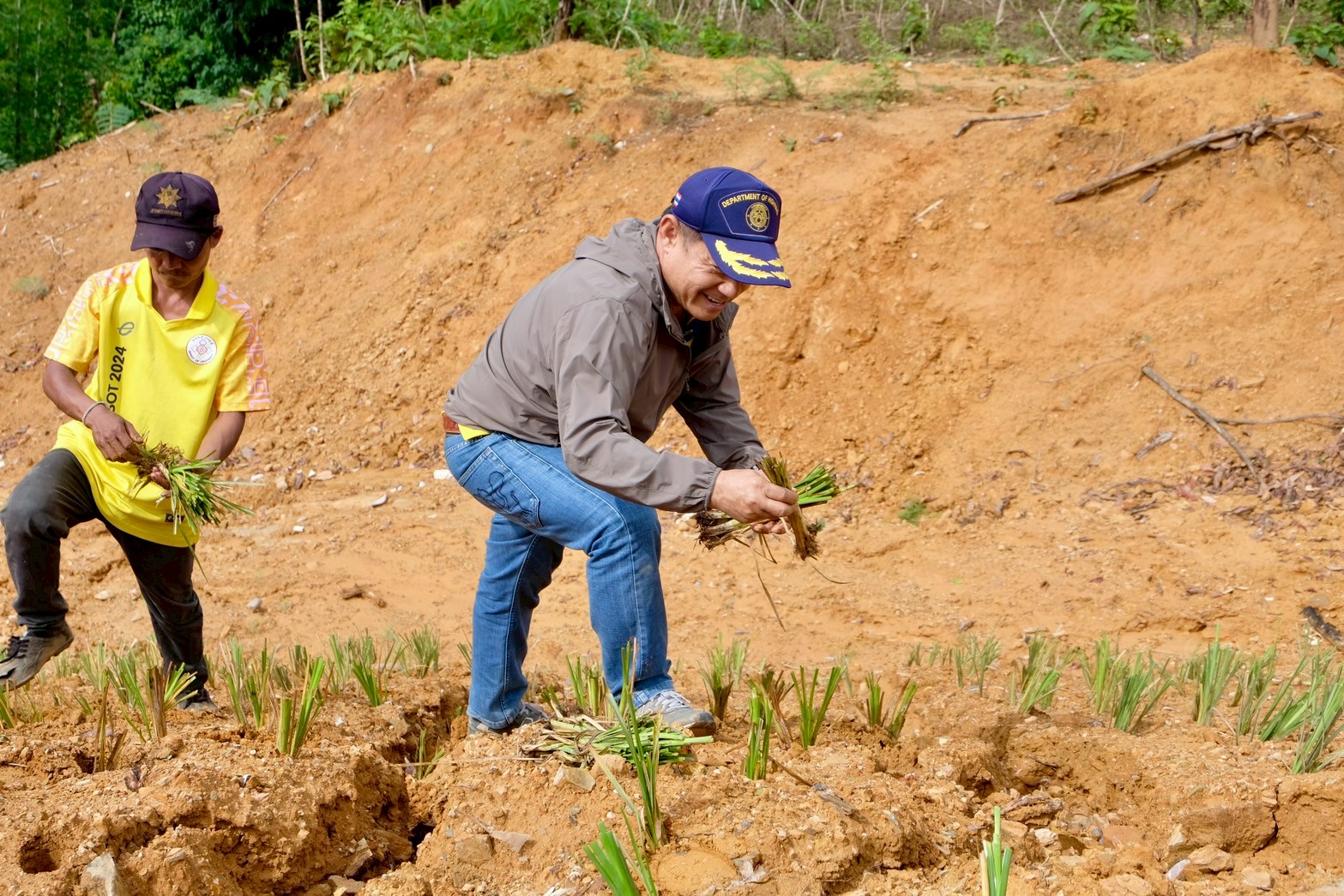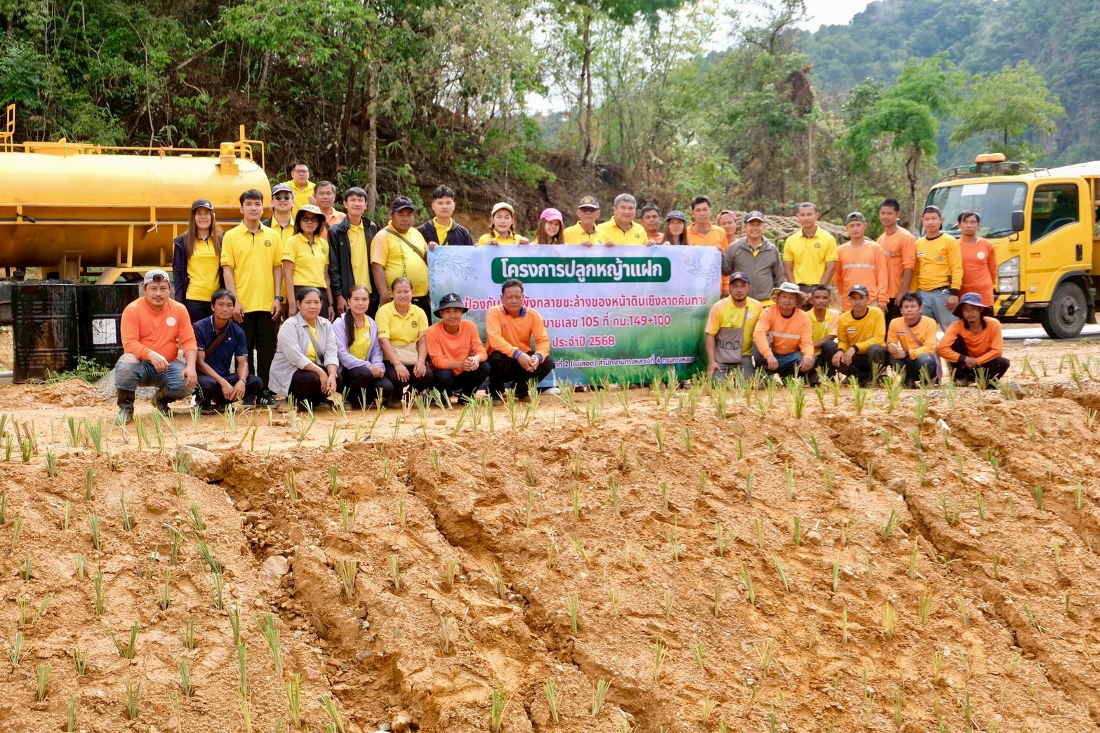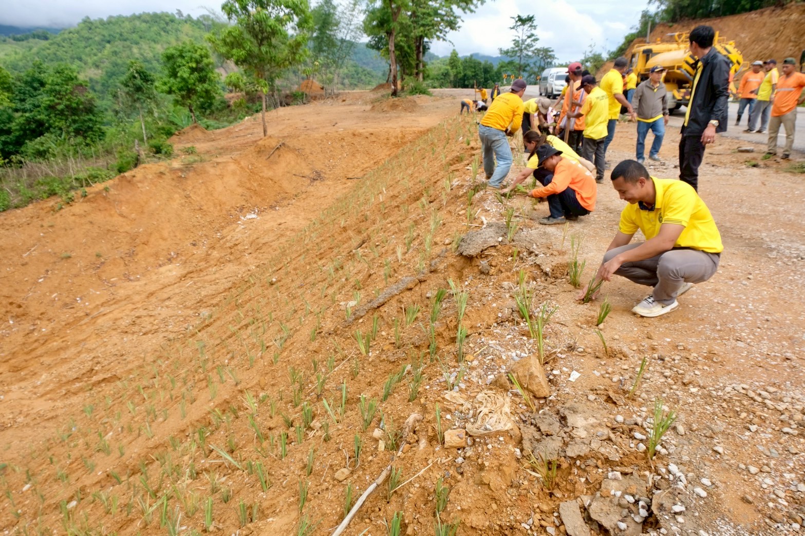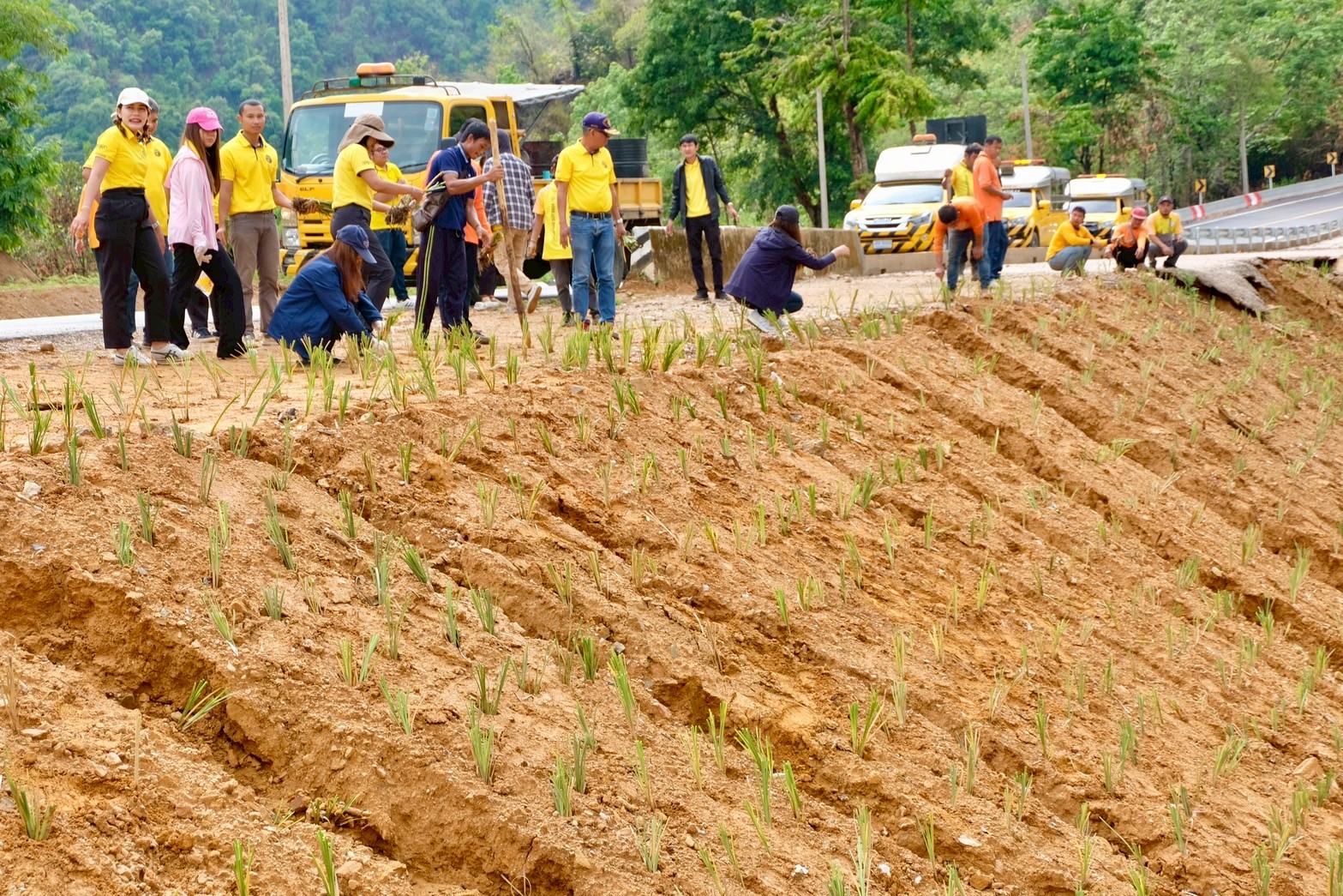 โครงการปลูกหญ้าแฝก เพื่อป้องกันการพังทลายชะล้างของหน้าดินเชิงลาดคันทาง บริเวณทางหลวงหมายเลข 105